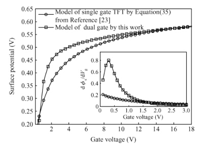 Key words: amorphous silicon thin-film transistor, dual gate, surface potential, density of states, Gaussian deep states, drain current