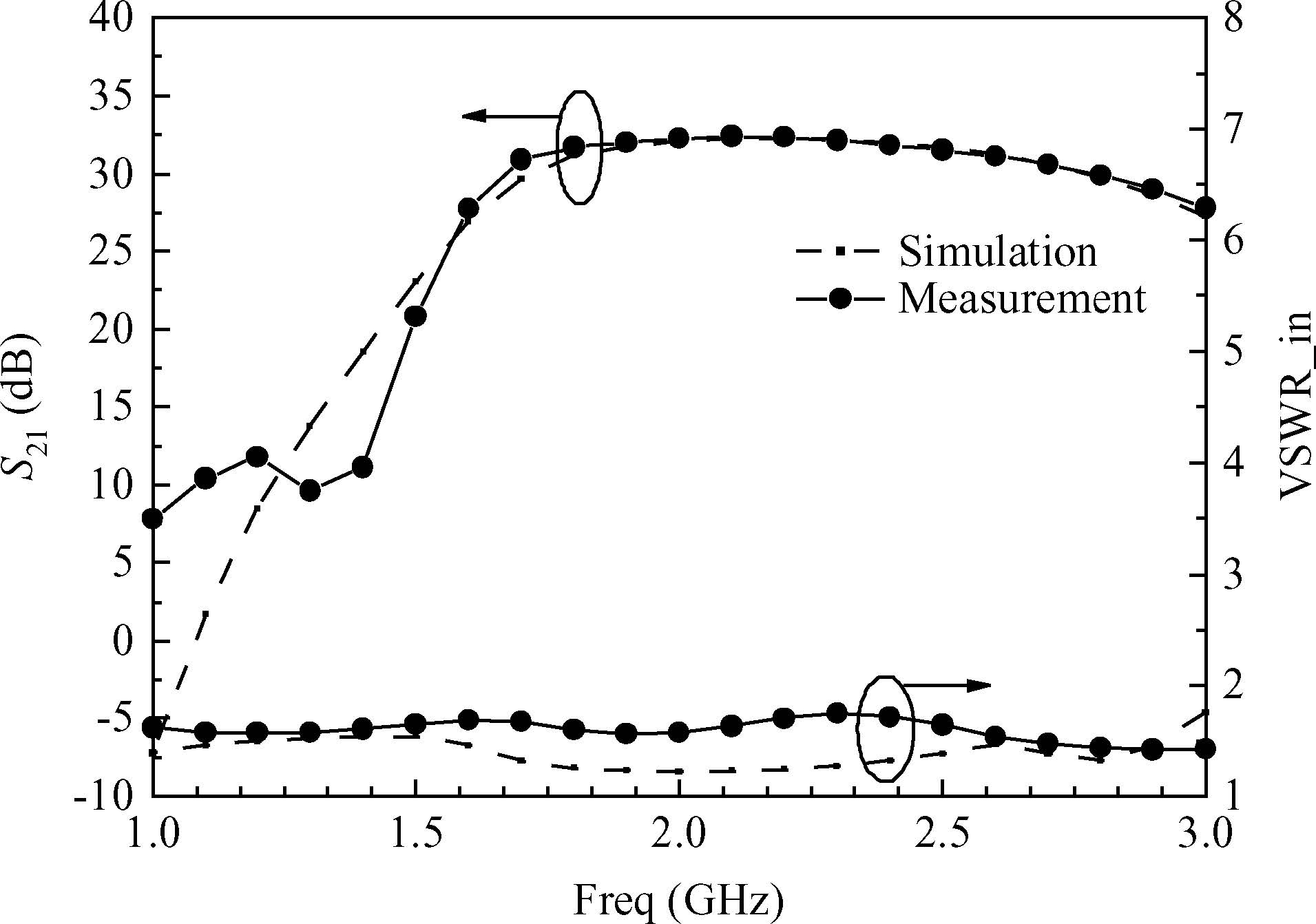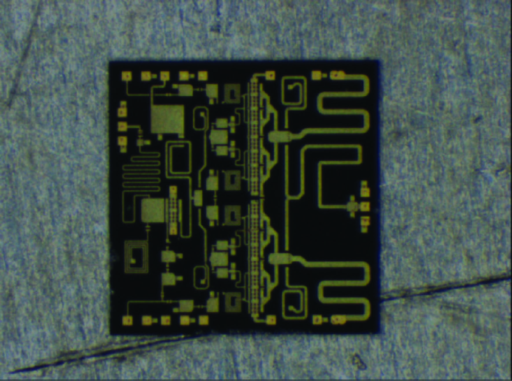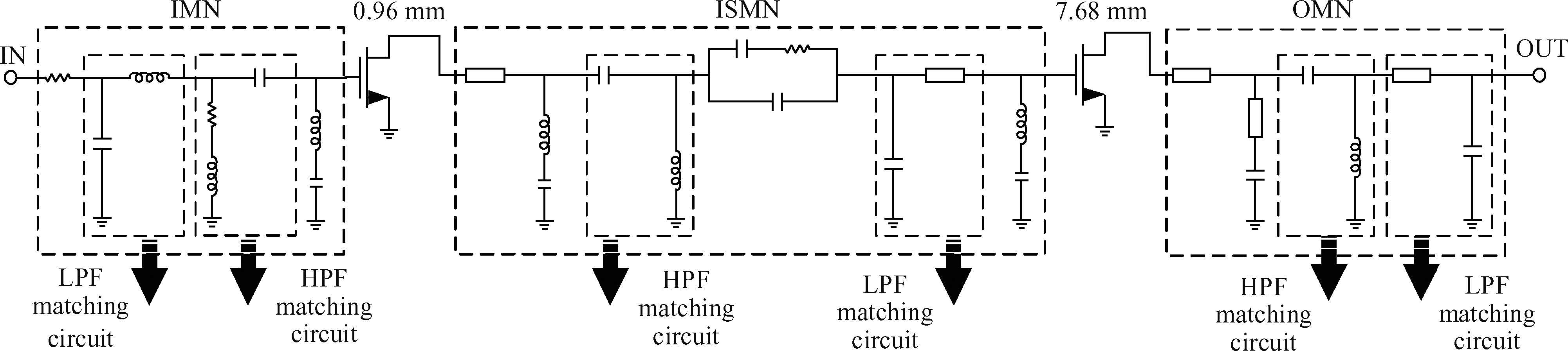 Abstract: This paper describes an S-band wideband high efficiency power amplifier based on the Nanjing Electron Device Institute's GaAs pHEMT monolithic microwave integrated circuit(MMIC) technology. To realize high efficiency, the two stage power amplifier is designed with a driver ratio of 1:8. The low-pass filter/high-pass filter combined matching circuit is applied to the amplifier to reduce the chip size, as well as to realize the optimum impedances over a wide bandwidth for high efficiency at each stage. Biased at class AB under a drain supply voltage of 5 V, the amplifier delivers 33-34 dBm saturated output power across the frequency range of 1.8 to 3 GHz with associated power-added efficiency of 35%-45% and very flat power gain of 25-26 dB in CW mode. The size of this MMIC is very compact with 2.7×2.75 mm2.