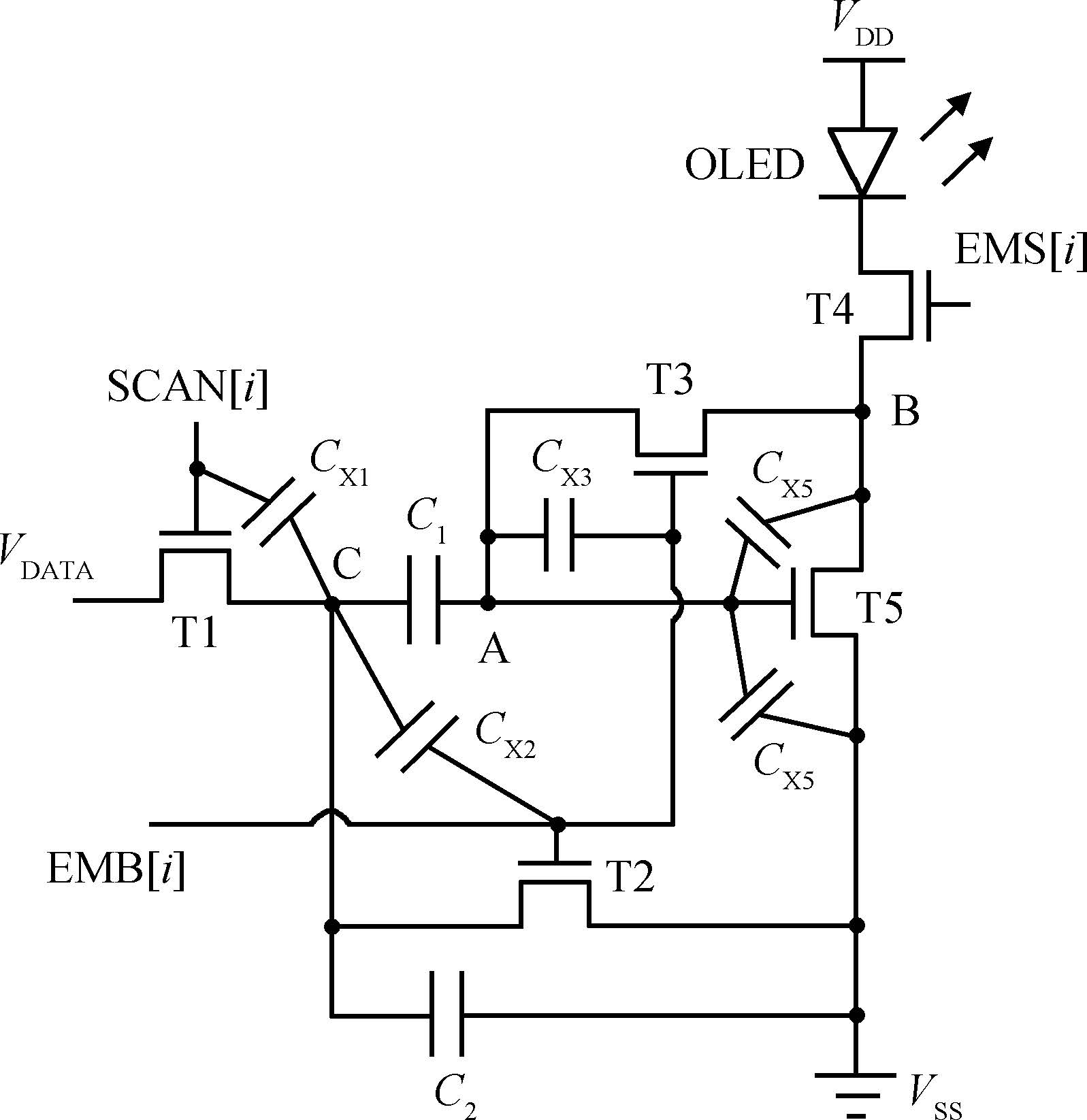 Key words: active-matrix organic light-emitting diode(AMOLED), low power, pixel circuit, mixed parallel addressing, optoelectronic integrated circuits