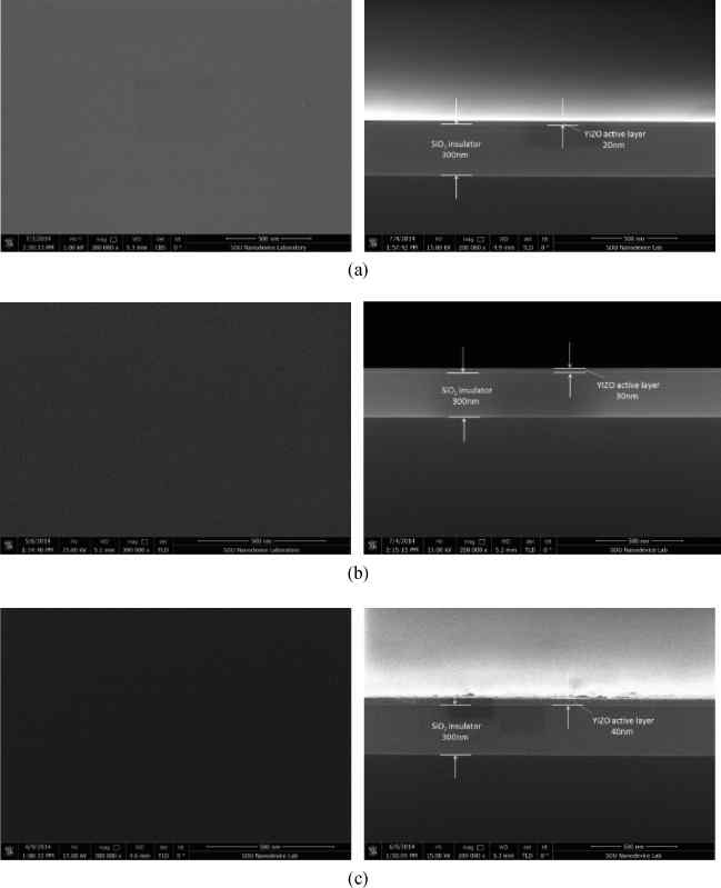 Table 1. The performance parameters of YIZO TFTs with different active layer thickness.