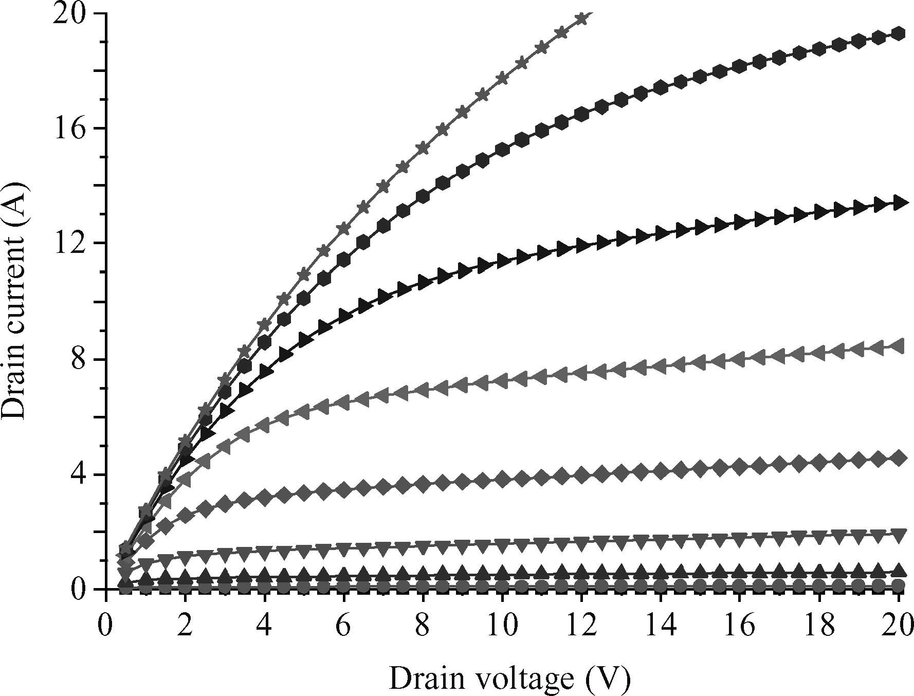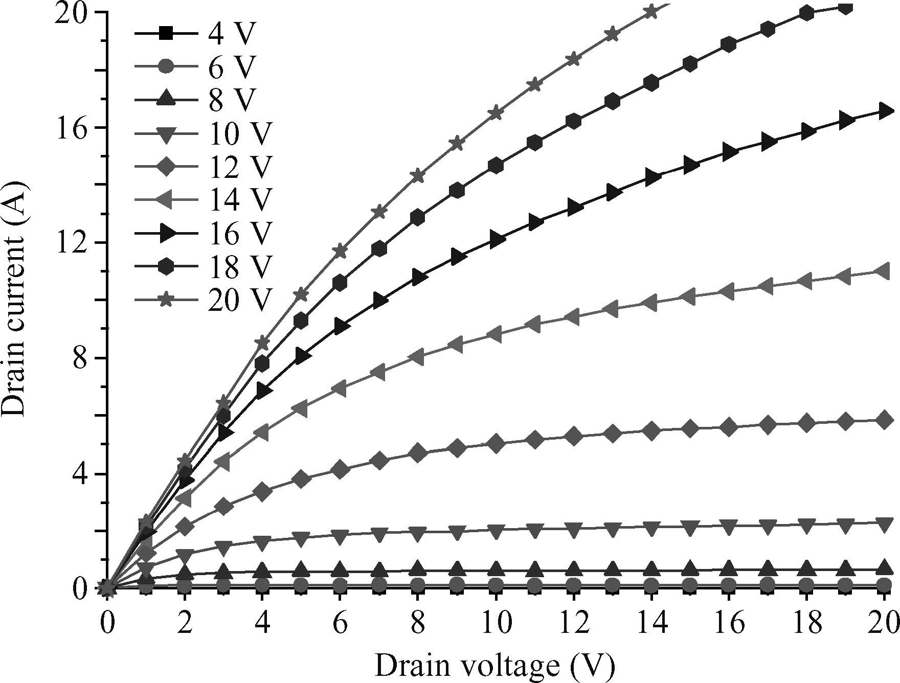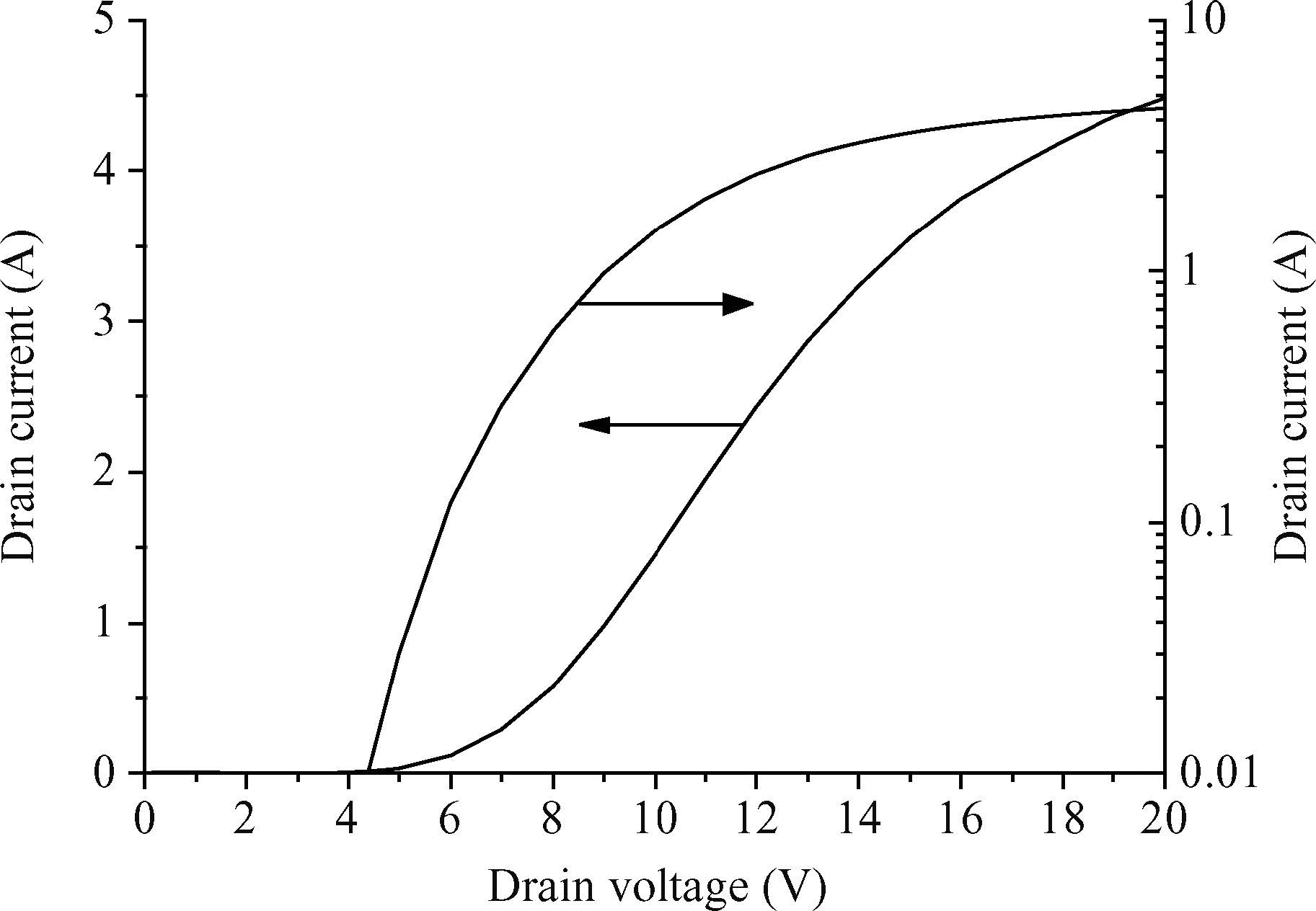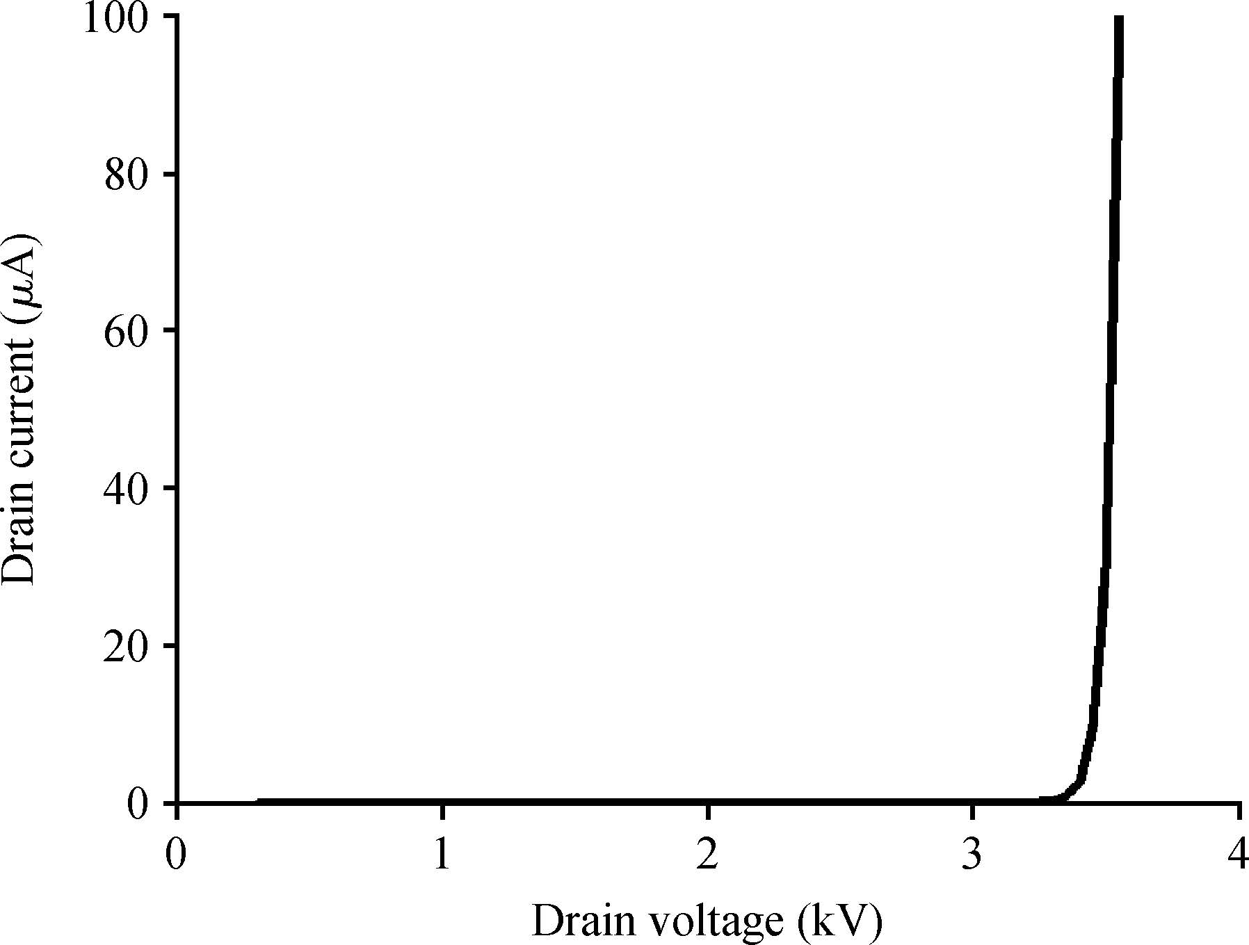 Abstract: A 4H-SiC MOSFET with breakdown voltage higher than 3300 V has been successfully designed and fabricated. Numerical simulations have been performed to optimize the parameters of the drift layer and DMOSFET cell structure of active area. The n-type epilayer is 33μm thick with a doping of 2.5 × 1015 cm-3. The devices were fabricated with a floating guard ring edge termination. The drain current Id = 5 A at Vg = 20 V, corresponding to Vd = 2.5 V.
