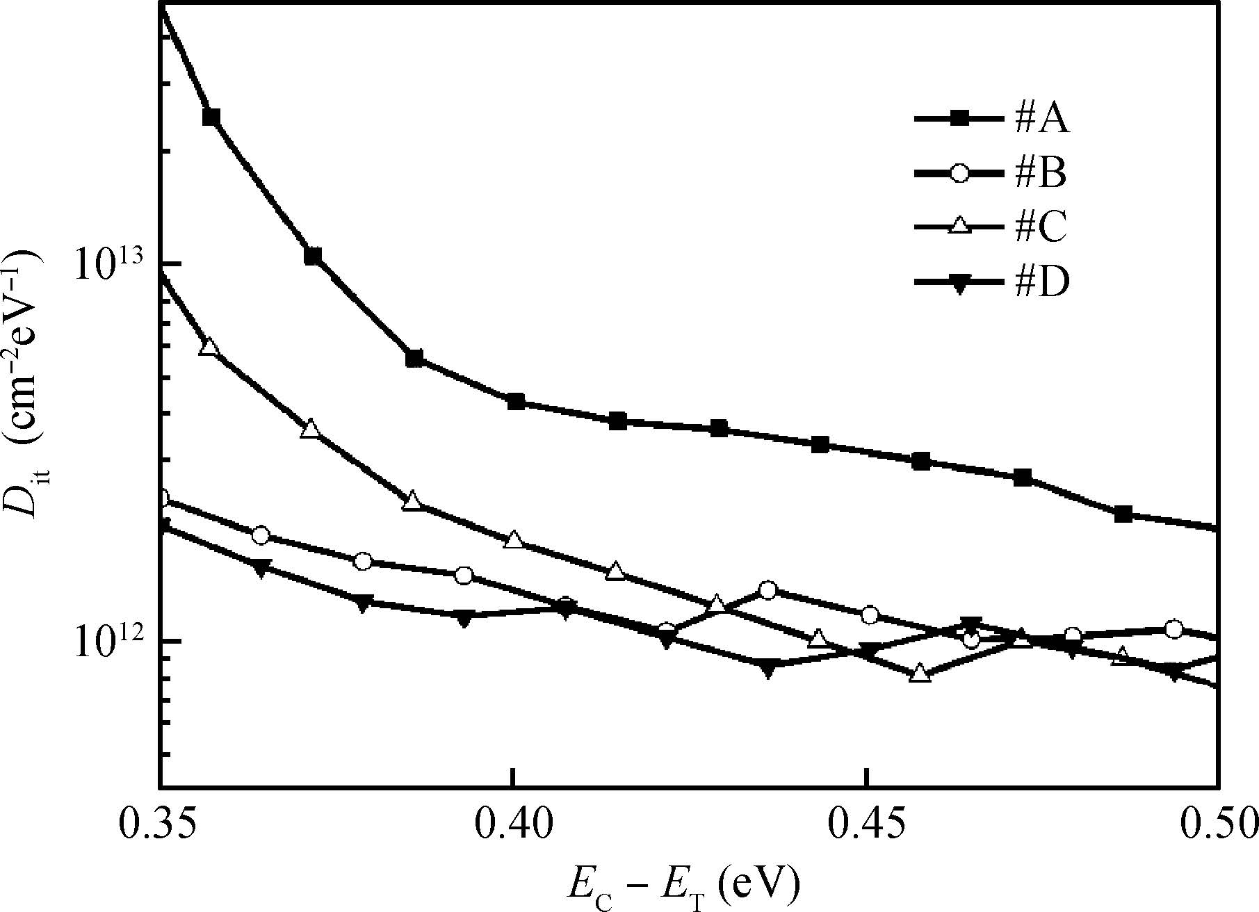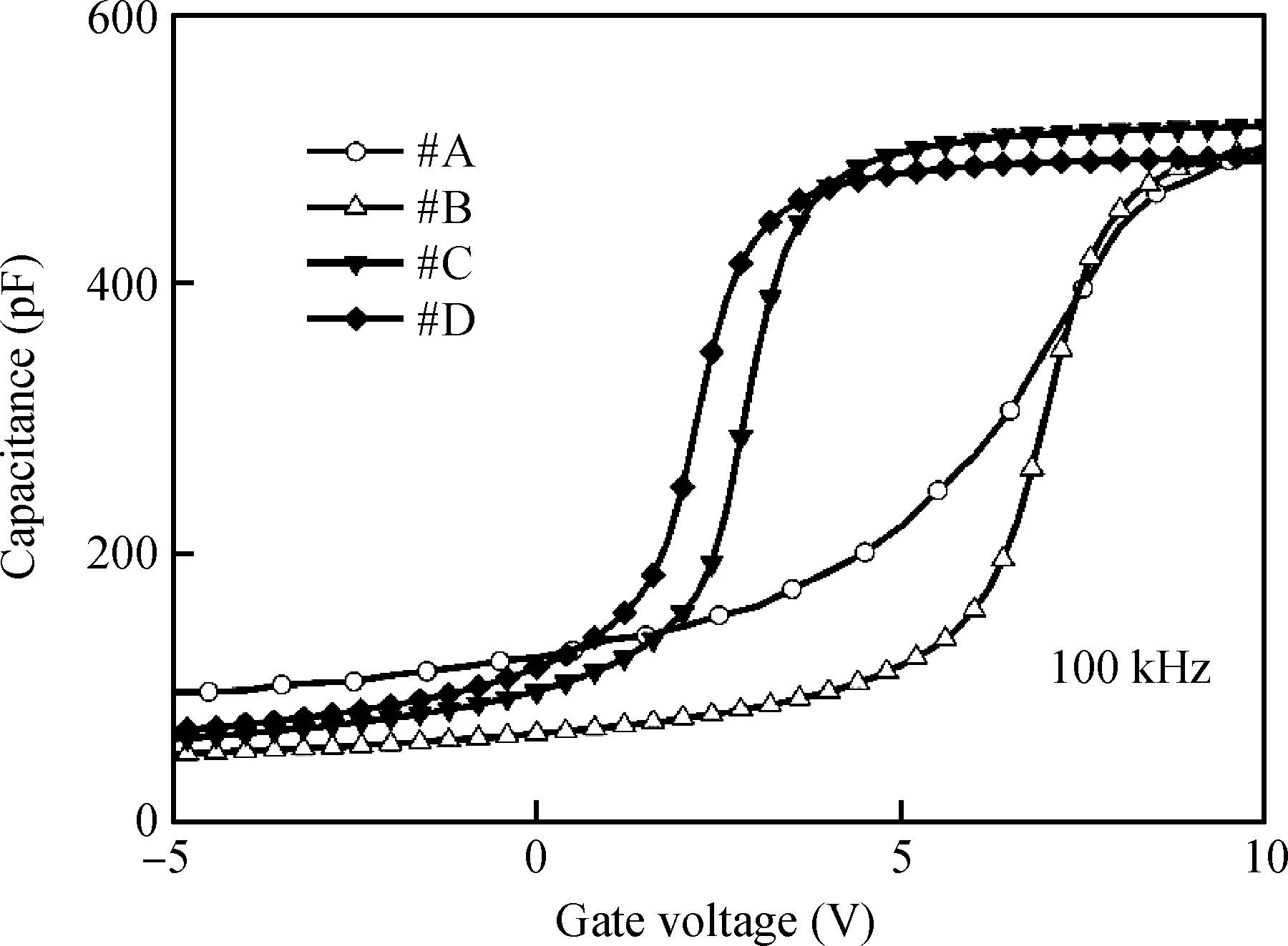 Abstract: The interface properties of 4H-SiC metal-oxide-semiconductor (MOS) capacitors with post-oxidation annealing (POA) in nitric oxide (NO) ambient after high temperature (1300 ℃) oxidation have been investigated using capacitance-voltage (C-V) measurements. The experimental results show that the interface states density can be obviously decreased by the POA in NO ambient, and further reduced with increasing POA temperature and time. In the meantime interface state density and oxidation time could be lowered at higher thermal oxidation temperature, which results in the better oxide MOS characteristics and lower production costs. POA temperature and time dependence of 4H-SiC MOS interface are also discussed in detail.