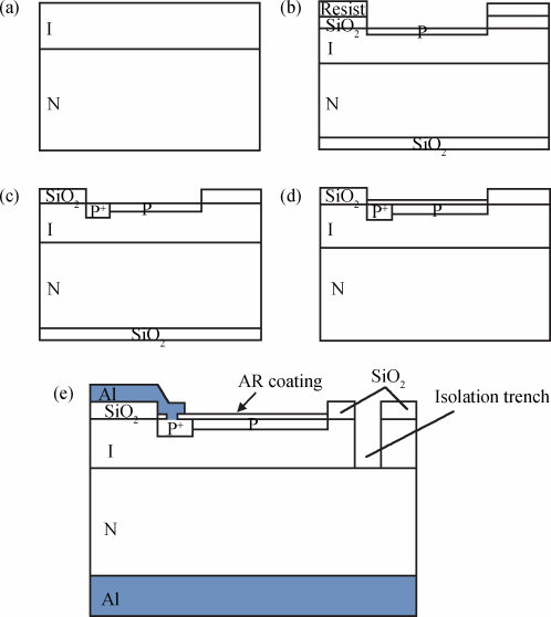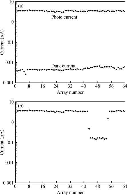 Abstract: A novel PIN (positive-intrinsic-negative) photodetector with double linear arrays that can be used to measure the diameter of precipitation particles and the space between two droplets in clouds is proposed. The sensitive unit is the PIN photodiode. The chip with a size of 10 × 8 mm2 has 128 photodiodes, and each row has 64 photodiodes. The device design, fabrication process and package are introduced in the paper. The photocurrent of the packaged chip was systematically tested with a red laser. Also the diameter of one water drop and the space between two water drops were measured. The minimum raindrop diameter which can be tested in this paper is 100μm. This device can be useful for rainfall prediction.
