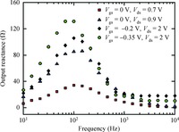 Abstract: The aim of this article is to investigate the effect of dielectric loss tangent on frequency dispersion of output reactance and capacitance in GaAs MESFETs. For this purpose, measurements of output impedance modulus and phase have been carried out within a frequency range of 10 Hz to 10 kHz, and various voltage values of gate-source (Vgs=0, -0.2, -0.3, -0.35, -0.4, -0.45, -0.5 and -0.6 V) and drain-source (Vds=0.7, 0.9, 1, 1.5 and 2 V) Based on the concept of complex permittivity of semiconductor material, complex capacitance is used to analyze and simulate frequency dispersion of output reactance and capacitance of GaAs MESFETs. The results show that conductor losses which dominate the dielectric loss tangent are attributed to trapping mechanisms at the interface of devices; so they influence the frequency dispersion of output reactance and capacitance in particular at low frequencies. This reveals that frequency dispersion of these parameters is also related to dielectric loss tangent of semiconductor materials which affects the response of electronic devices according to frequency variation.
