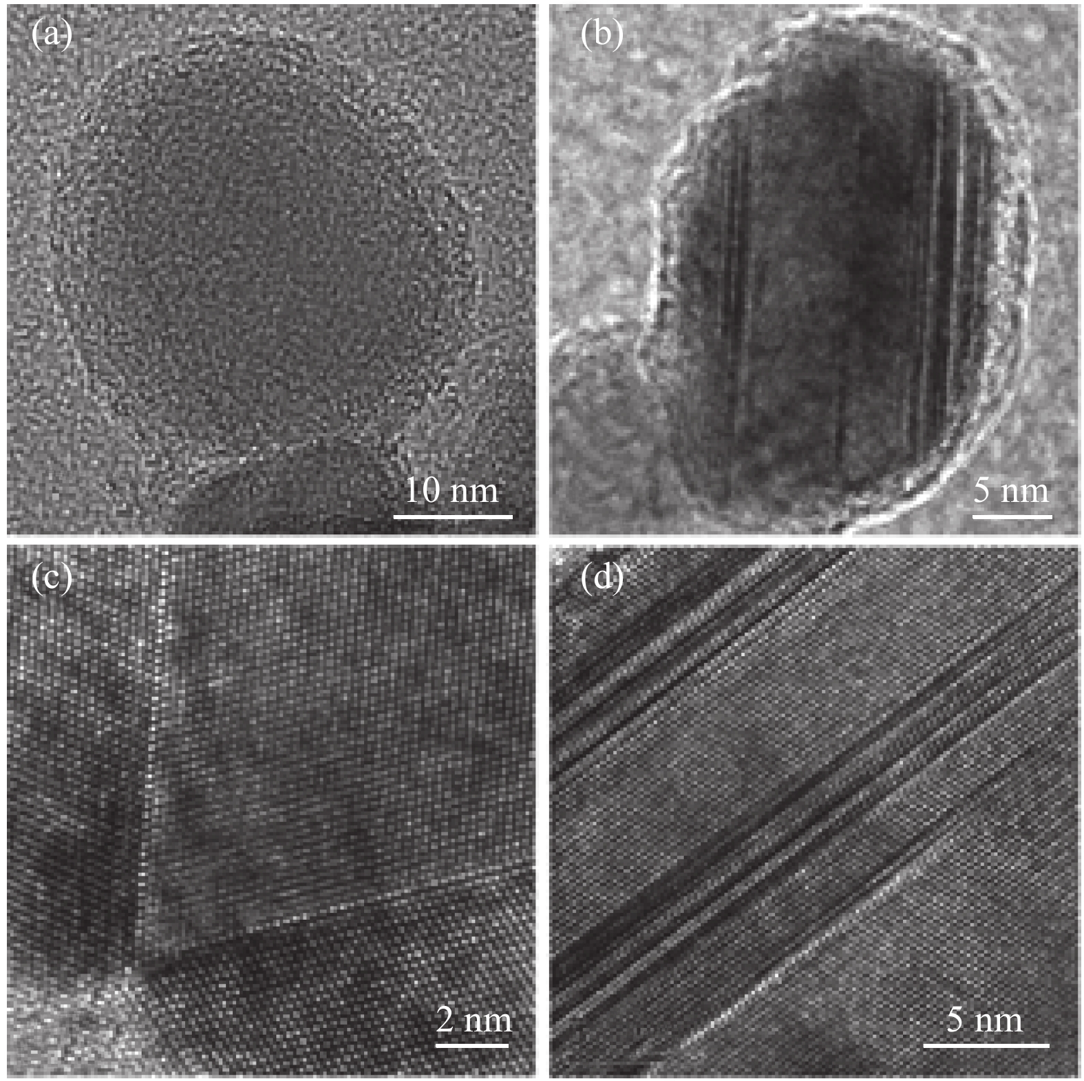 Abstract: The structure and size of SiC nanoparticles were studied by different characterization methods including small angle X-ray scattering (SAXS), transmission electron microscope (TEM), and X-ray diffraction (XRD). The results showed that particle size distributions determined respectively from SAXS and TEM are comparable and follow the log-normal function. The size distribution of the particles is between 10 to 100 nm with most of them being in the range of 20–50 nm. The average particle size is around 42 nm. XRD identifies the phase of the SiC nanoparticles and suggests the average size of the single crystalline domain to be around 21 nm. The combined results from XRD and SAXS suggest the existence of many polycrystals, which is confirmed by the HRTEM observation of particles with twins and stacking faults. The material synthesis methods leading to various particle sizes are also discussed.