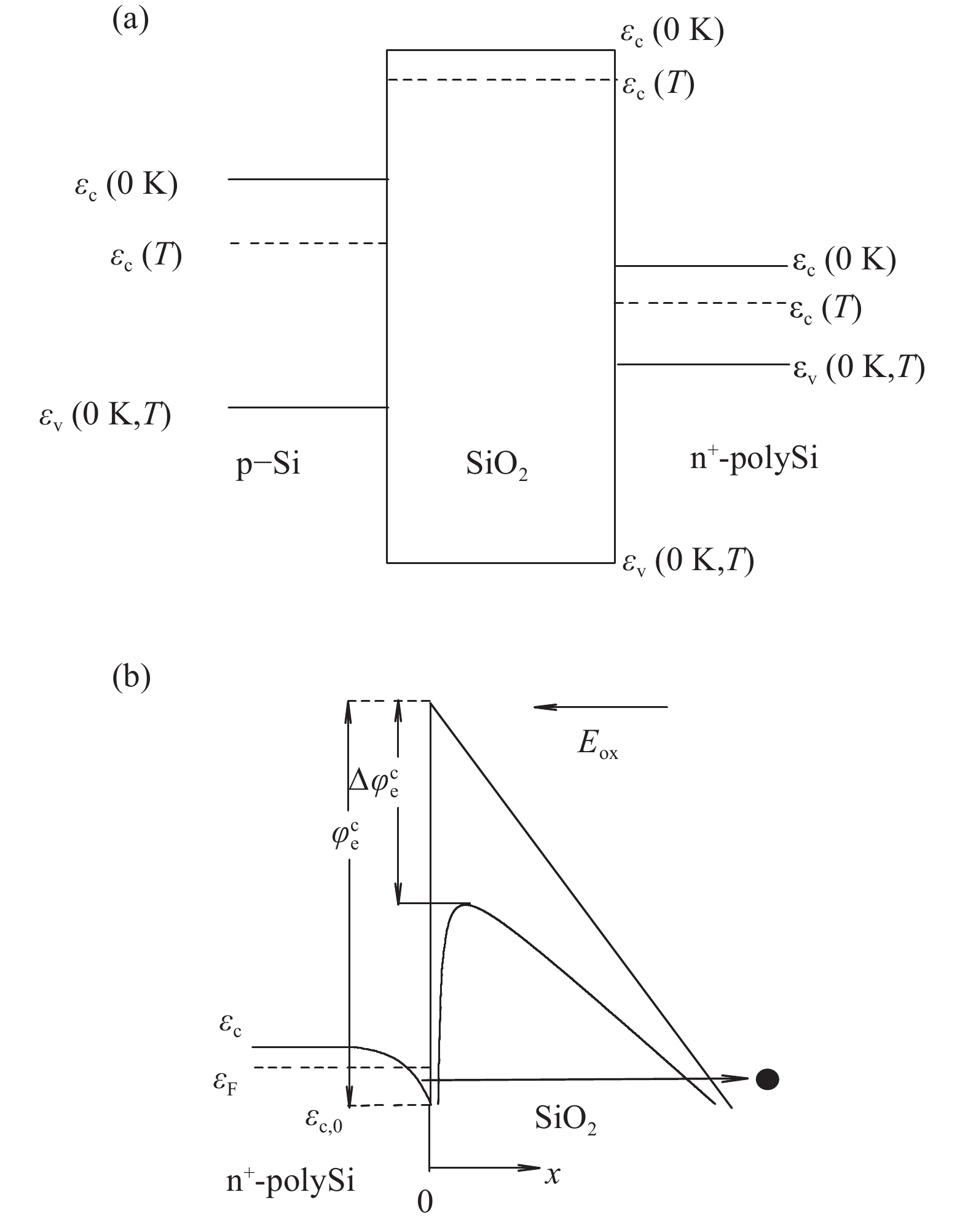 | Temperature (°C) | Eg (n+-polySi)(eV) | Eg (SiO2)(eV) | Φec(eV) |