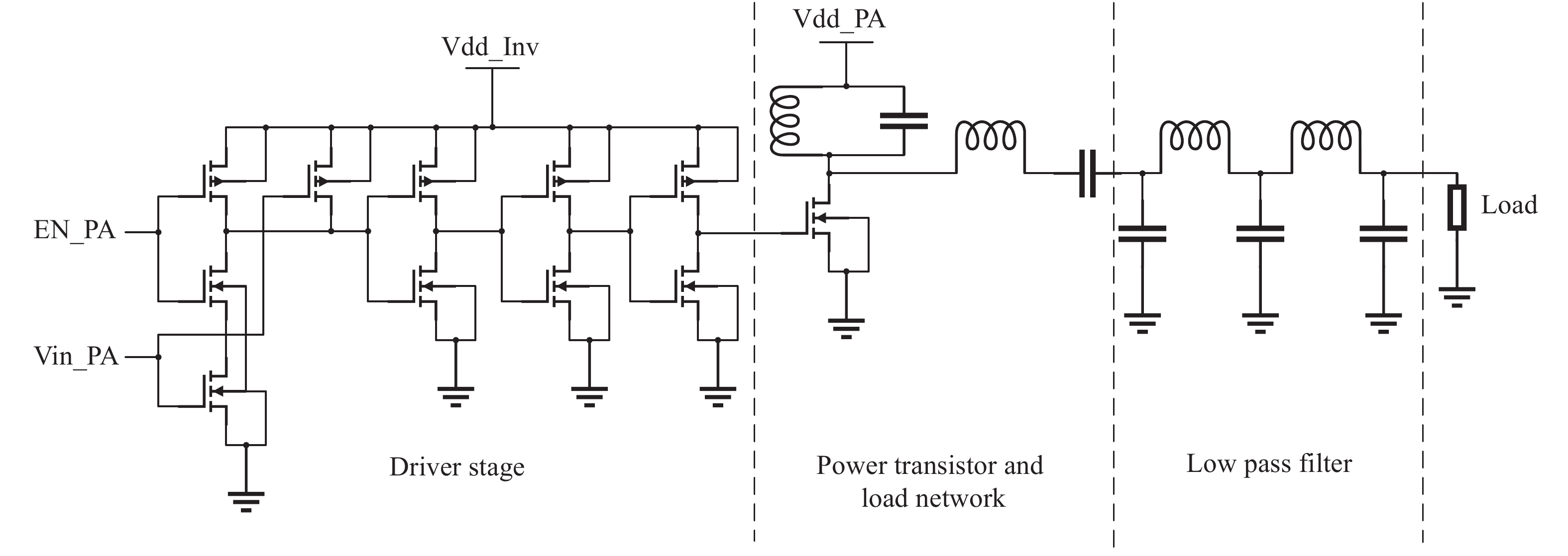 | Die area (mm2) | 0.9 | 1 (the whole transmitter) | 0.385 (off-chip load network and filter) |