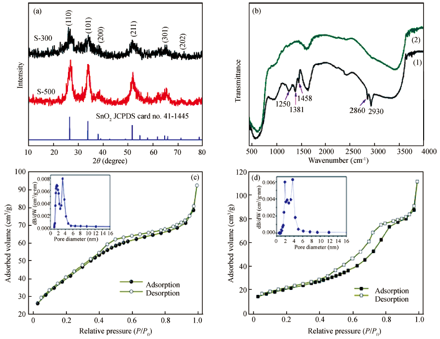 Abstract: Mesoporous tin oxide(SnO2/with a high surface area of 147.5 m2/g has been successfully synthesized via self-assembly process, combining the driven forces of water-evaporation and molecular interactions. Scanning electron microscope, X-ray diffraction, transmission electron micrograph, Fourier transform infrared and BrunauerEmmett-Teller were employed to analyze the morphology and crystal structure of the as-synthesized mesoporous materials. As a gas sensor, mesoporous SnO2 shows impressive performances towards NOx gas with high selectivity and stability as well as ultra high sensitivity about 94.3 to 10 ppm NOx gas at 300℃. The best response time of the sample S-500 is about 3.4s to 10 ppm NOx at 450℃.