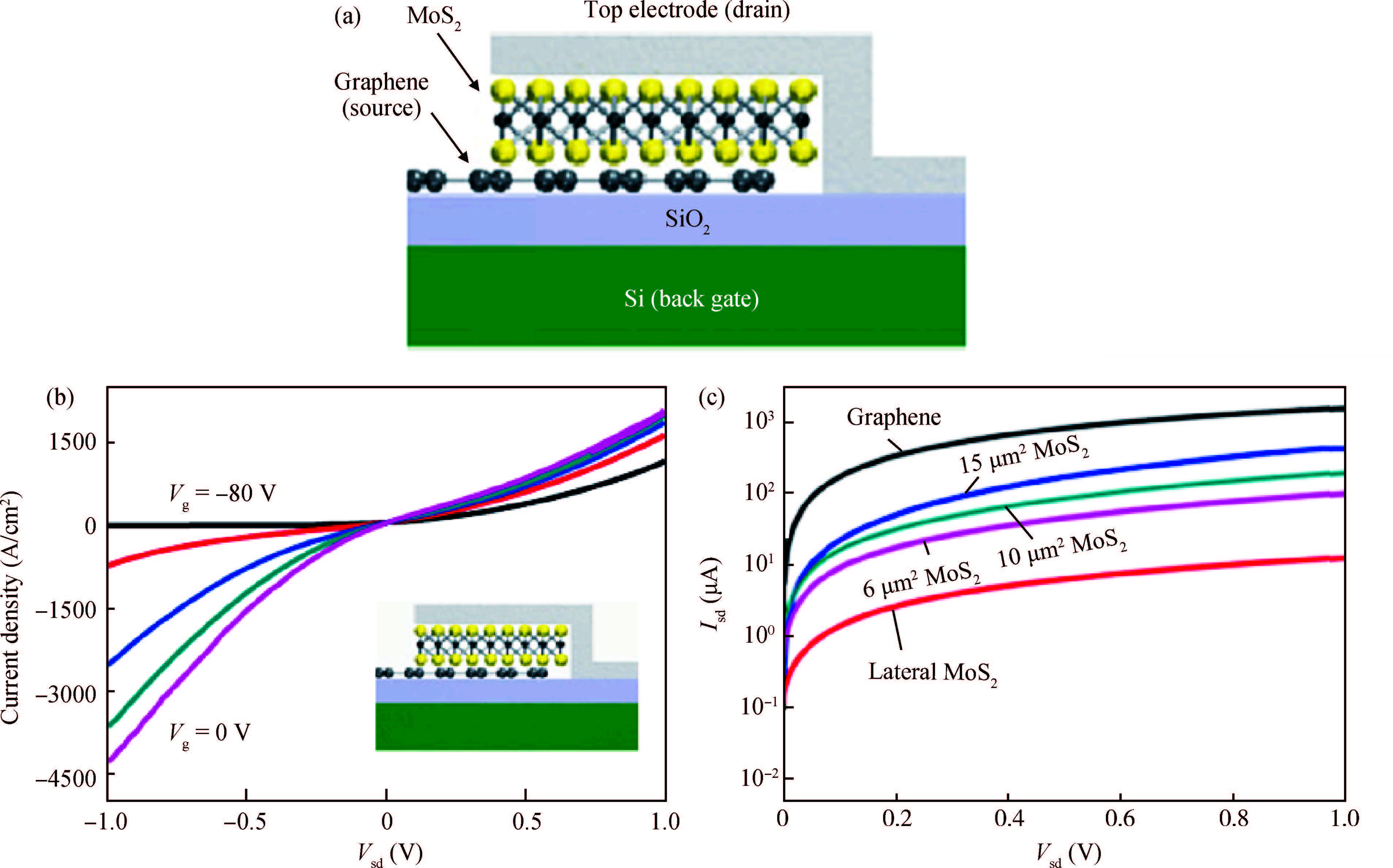 Moriya R, Yamaguchi T, Inoue Y, et al. Large current modulation in exfoliated-graphene/MoS2/metal vertical heterostructures. Appl Phys Lett, 2014, 105(8):083119 doi: 10.1063/1.4894256