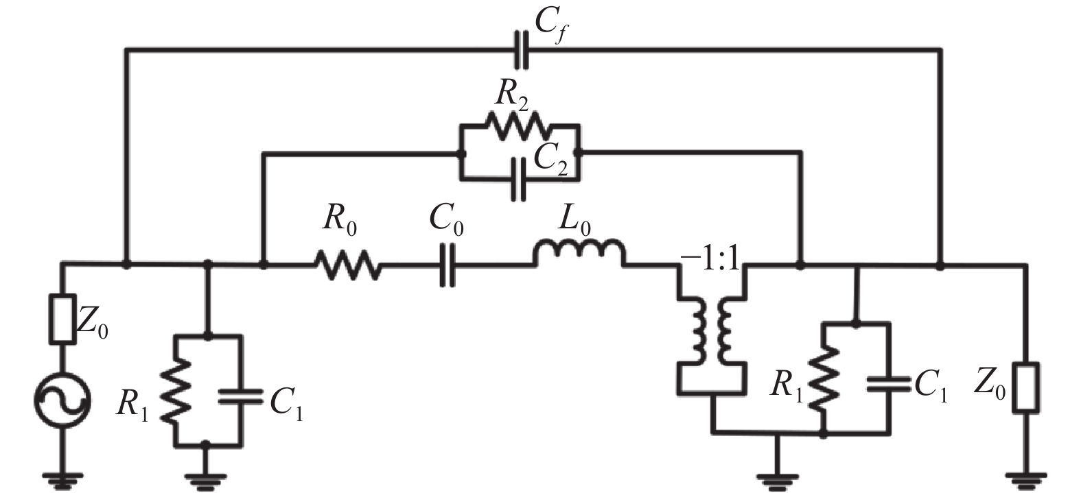 | R0 (kΩ) | L0 (H) | C0 (fF) | R1 (pF) | C1 (MΩ) | R2 (MΩ) | C2 (fF) |