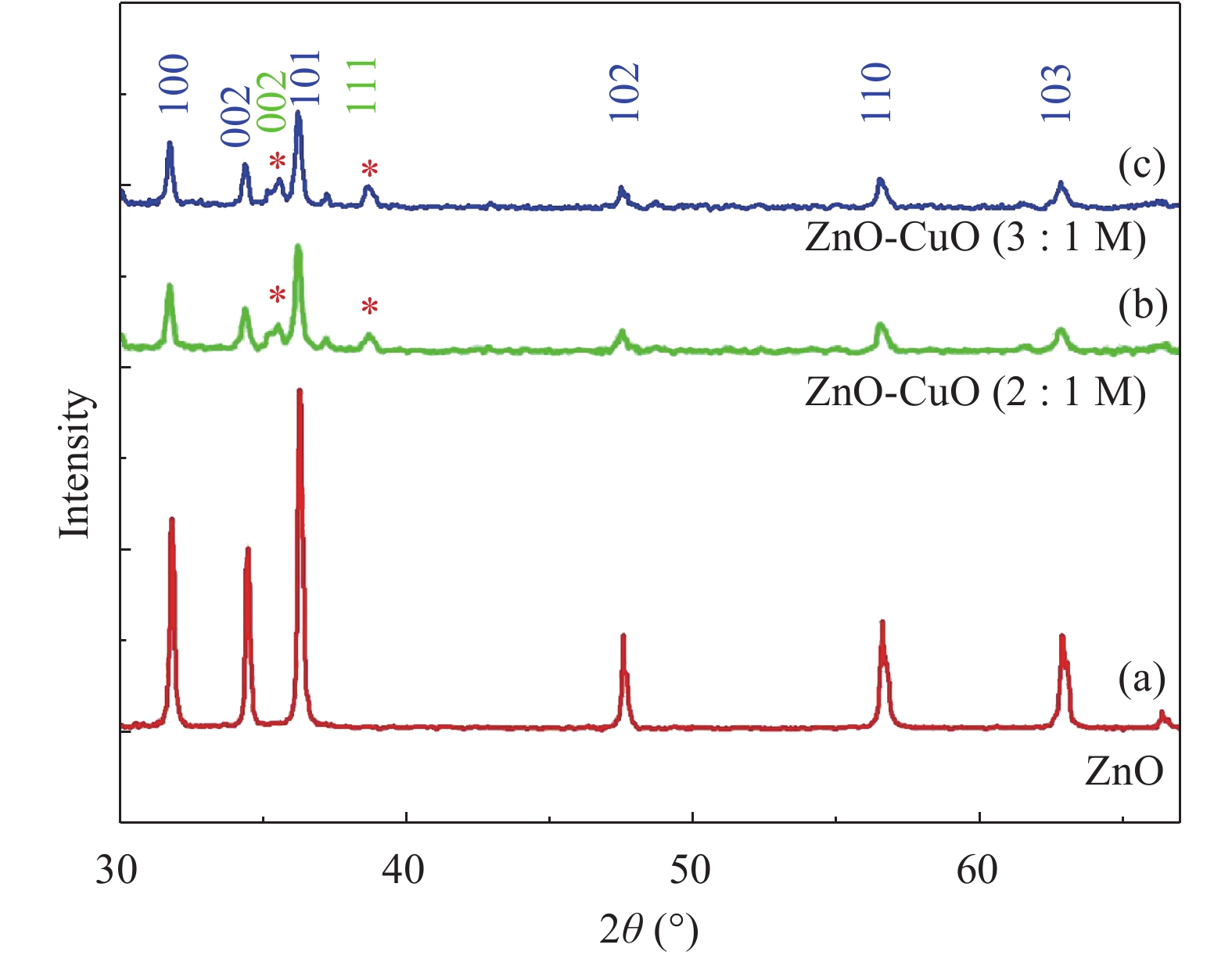 Table 1. Structural studies of (a) ZnO, (b) ZnO–CuO nanocomposite 2 : 1 M and (c) ZnO–CuO nanocomposite 3 : 1 M.