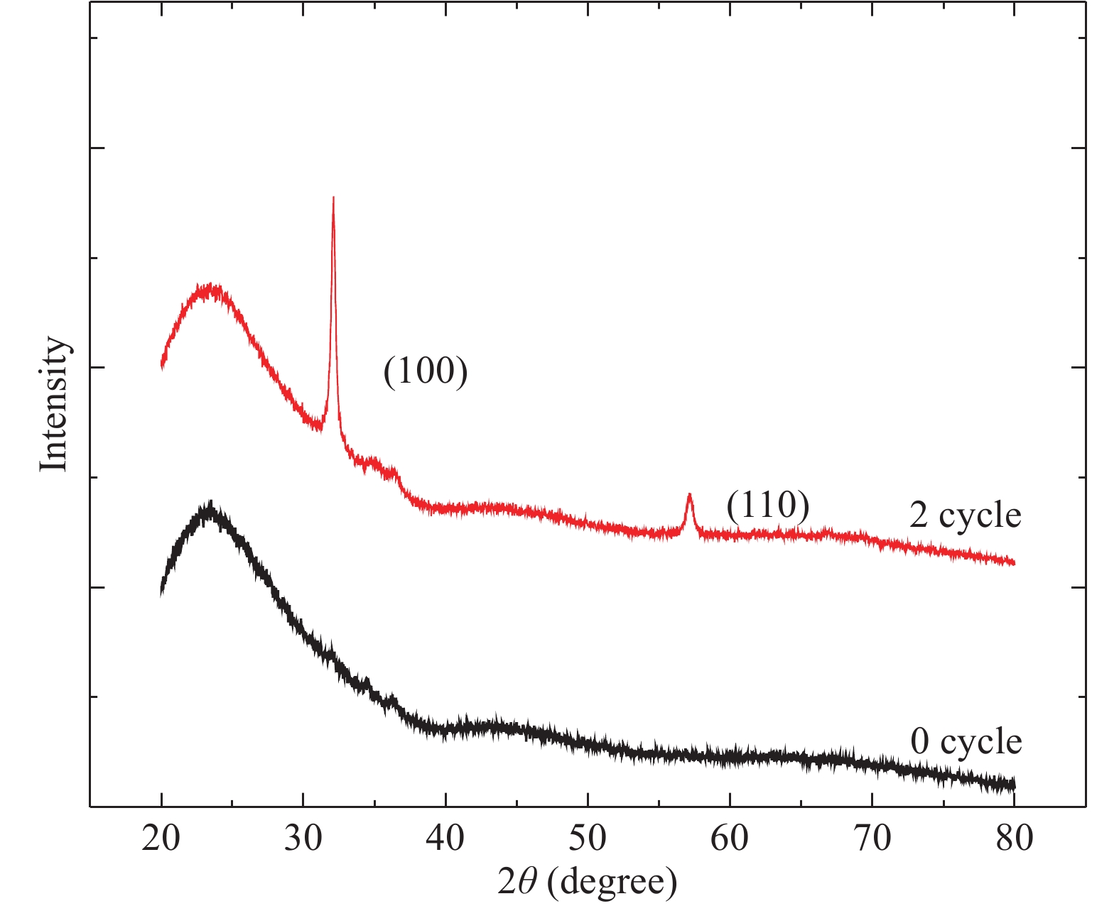 Fig. 5.  (Color online) XRD spectra of AZO films as a function of Zn : Al cycle ratio. (a) 20 : 0. (b) 20 : 2.
