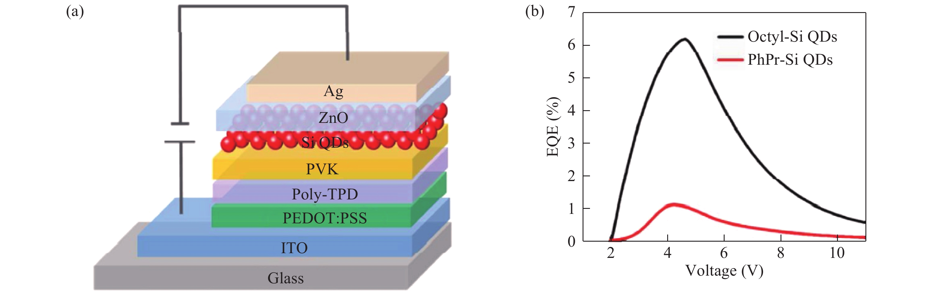 Liu X, Zhao S, Gu W, et al. Light-emitting diodes based on colloidal silicon quantum dots with octyl and phenylpropyl ligands. ACS Appl Mater Interfaces, 2018, 10: 5959 doi: 10.1021/acsami.7b16980