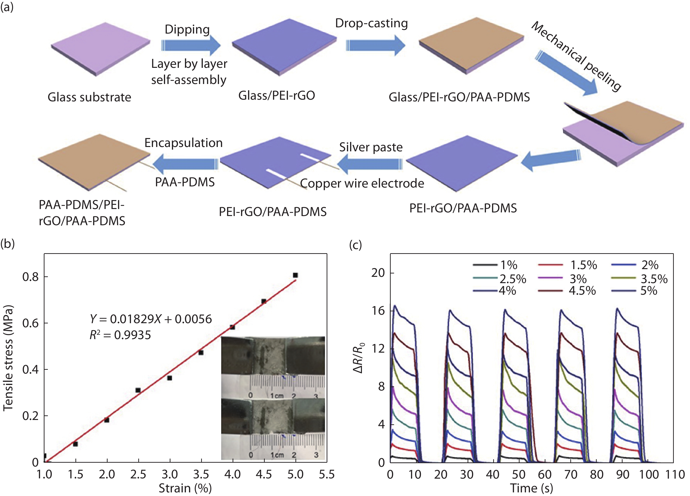 Ye X, Yuan Z, Tai H, et al. A wearable and highly sensitive strain sensor based on a polyethylenimine–rGO layered nanocomposite thin film. J Mater Chem C, 2017, 5(31), 7746 doi: 10.1039/C7TC01872J