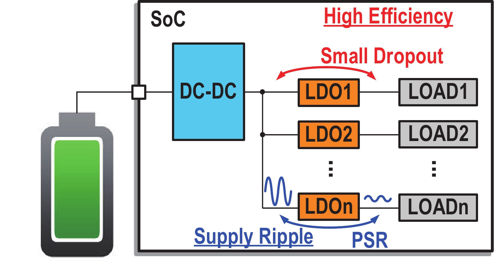 Wang X Y, Mercier P P. A dynamically high-impedance charge-pump-based LDO with digital-LDO-like properties achieving a sub-4-fs FoM. IEEE J Solid-State Circuits, 2020, 55, 719 doi: 10.1109/JSSC.2019.2960004