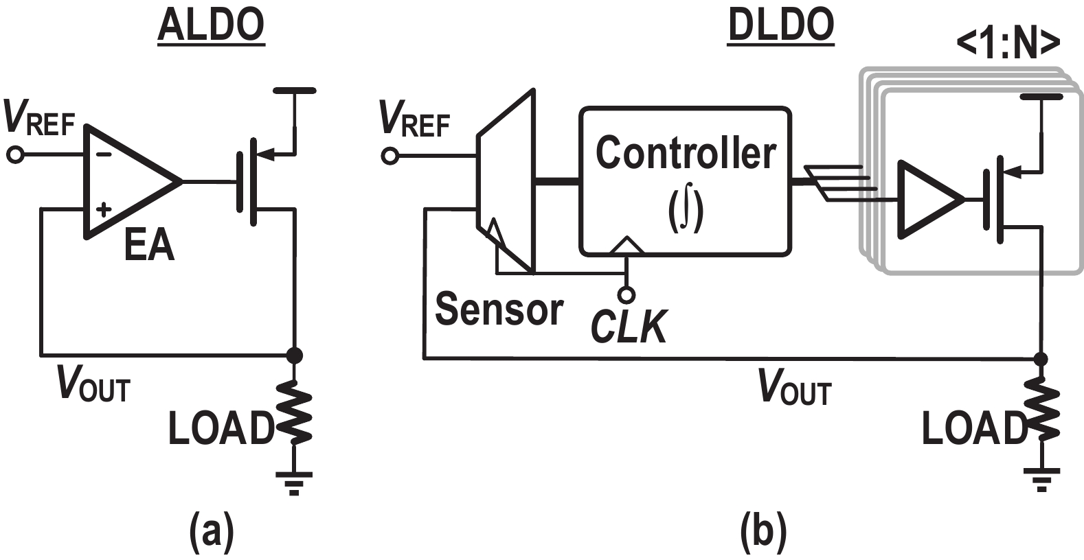 Sun X, Boora A, Zhang W B, et al. A 0.6-to-1.1 V computationally regulated digital LDO with 2.79-cycle mean settling time and autonomous runtime gain tracking in 65 nm CMOS. 2019 IEEE International Solid- State Circuits Conference (ISSCC), 2019, 230