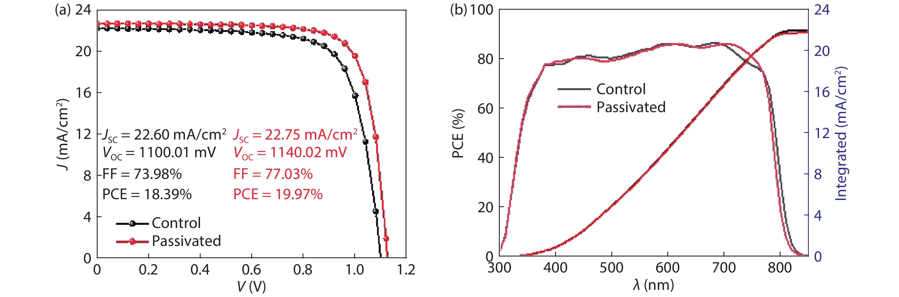 Table 2. Summary of fitted results of TRPL of the passivated and control devices.