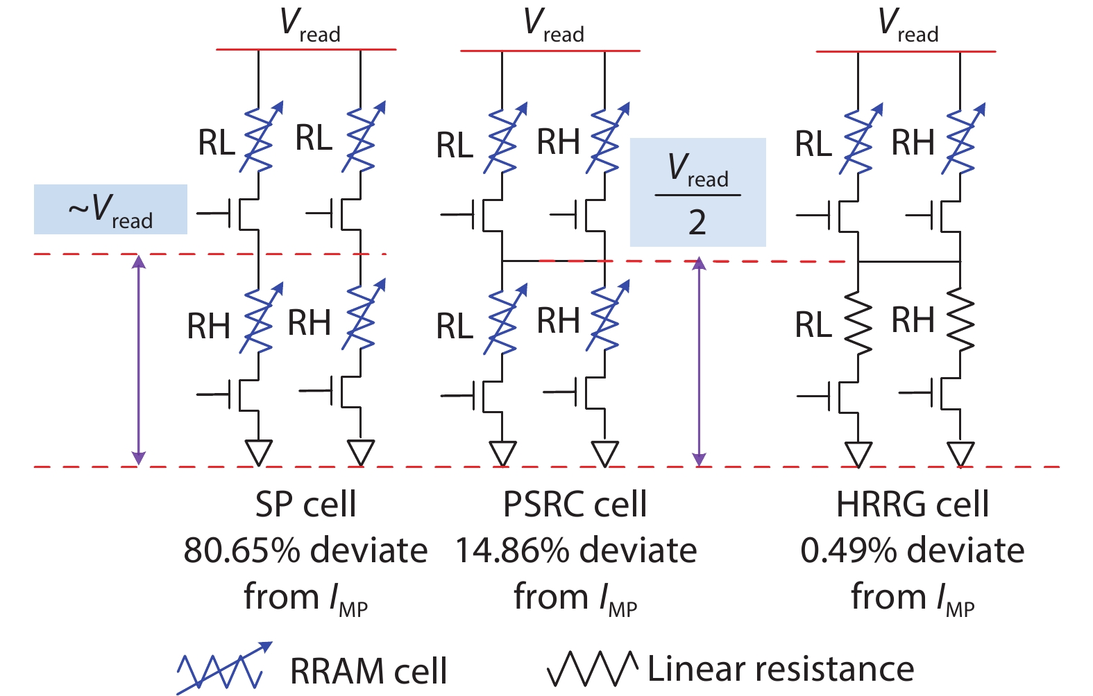 Key words: RRAM, double sensing margin, device mismatch cancellation, nonlinearity of RRAM resistance, hybrid reference-cell