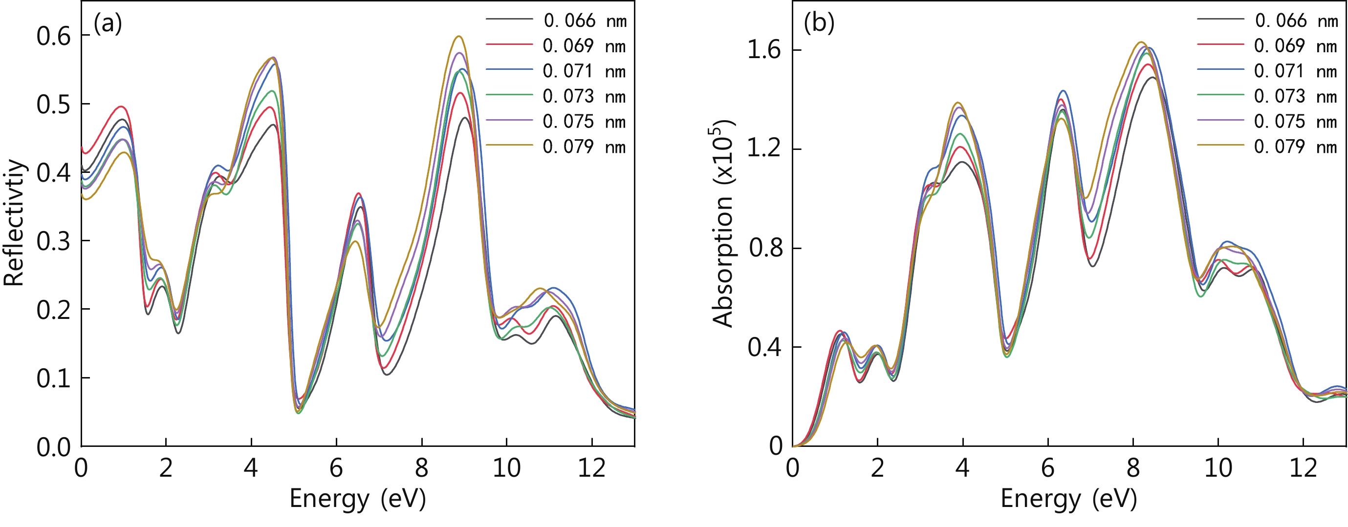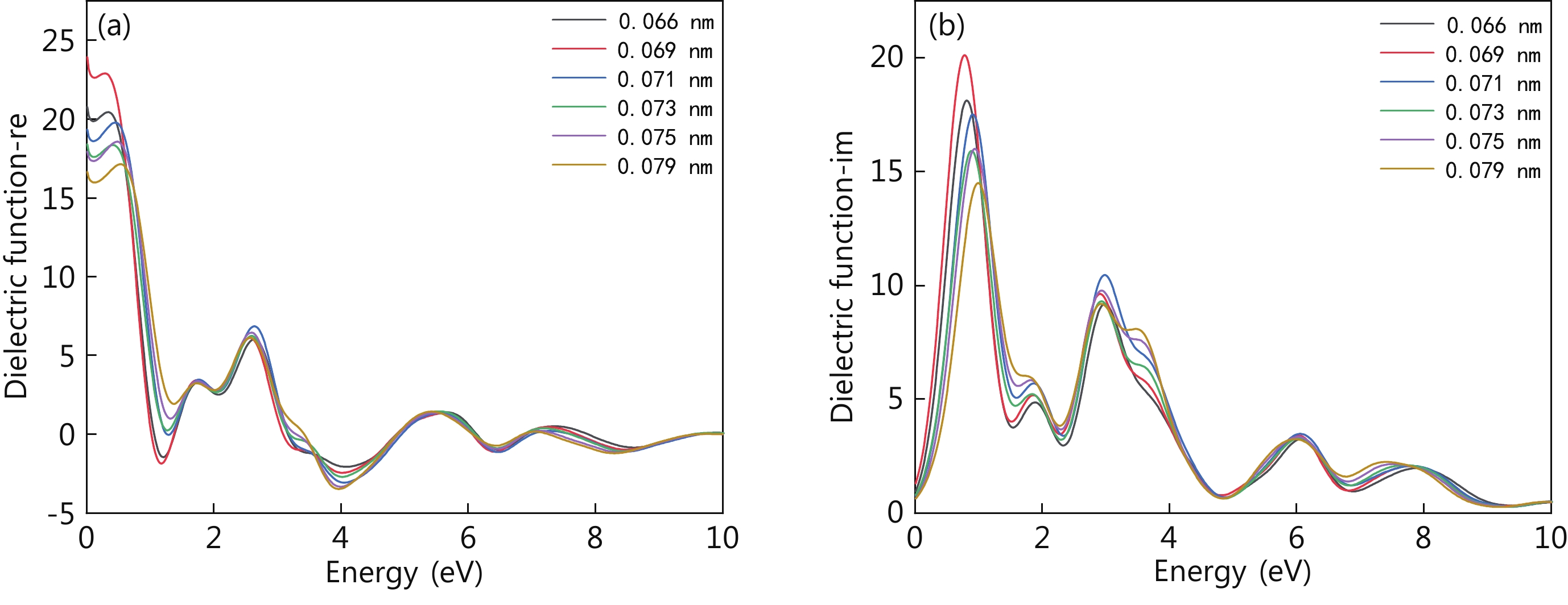 Abstract: The electronic structure and optical properties of bilayer germanene under different warpages are studied by the first-principles method of density functional theory. The effects of warpages on the electronic structure and optical properties of bilayer germanene are analyzed. The results of the electronic structure study show that the bottom of the conduction band of bilayer germanene moves to the lower energy direction with the increase of warpages at the K point, and the top of the valence band stays constant at the K point, and so the band gap decreases with the increase of warpage. When the warpage is 0.075 nm, the top of the valence band of bilayer germanene changes from K point to G point, and the bilayer germanene becomes an indirect band gap semiconductor. This is an effective means to modulate the conversion of bilayer germanene between direct band gap semiconductor and indirect band gap semiconductor by adjusting the band structure of bilayer germanene effectively. The study of optical properties shows that the effect of warpage on the optical properties of bilayer germanene is mainly distributed in the ultraviolet and visible regions, and the warpage can effectively regulate the electronic structure and optical properties of bilayer germanene. When the warpage is 0.069 nm, the first peak of dielectric function and extinction coefficient is the largest, and the energy corresponding to the absorption band edge is the smallest. Therefore, the electron utilization rate is the best when the warpage is 0.069 nm.