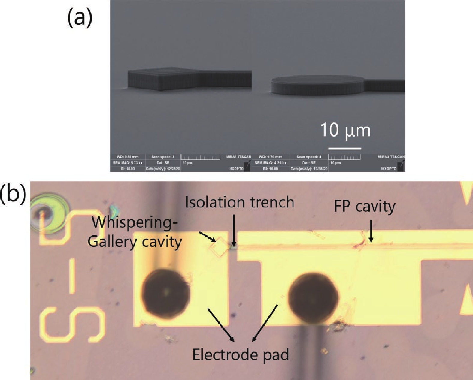 Abstract: A wide wavelength tuning range and single-mode hybrid cavity laser consists of a square Whispering-Gallery (WG) microcavity and a Fabry–Pérot (FP) was introduced and demonstrated. A wavelength tuning range over 12.5 nm from 1760.87 to 1773.39 nm which was single-mode emitting was obtained with the side-mode suppression ratio over 30 dB. The hybrid cavity laser does not need grating etching and special epitaxial structure, which reduces the fabrication difficulty and cost, and shows the potential for gas sensing with absorption lines in this range.