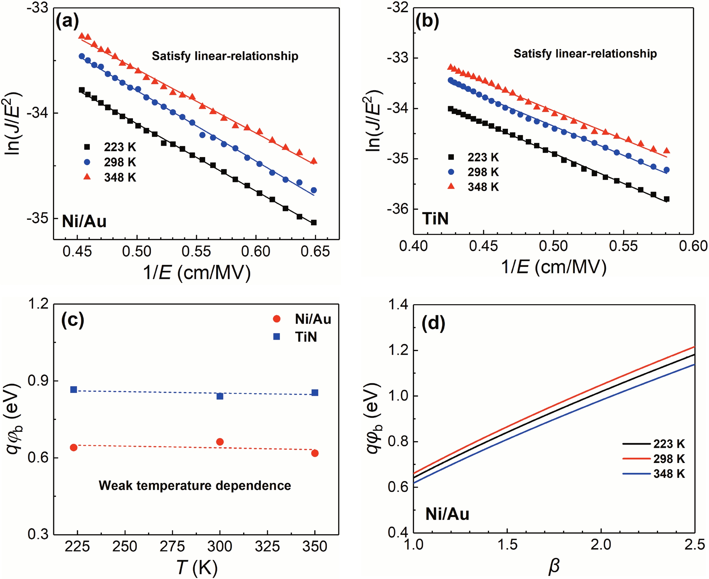 Zhang H, Miller E J, Yu E T. Analysis of leakage current mechanisms in Schottky contacts to GaN and Al0.25Ga0.75N∕GaN grown by molecular-beam epitaxy. J Appl Phys, 2006, 99, 023703 doi: 10.1063/1.2159547