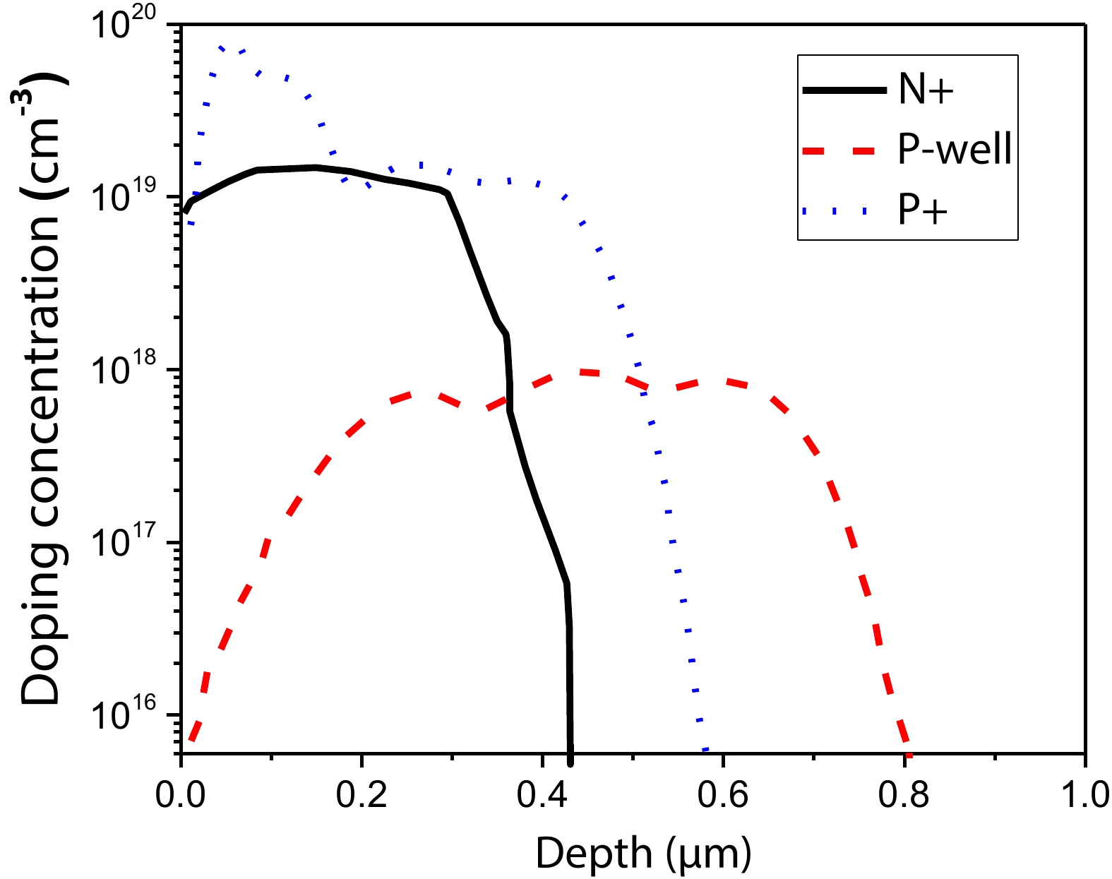 Table 1. The temperature, dose and energy used in the fabrications for P-well, P+ region and N+ regions.