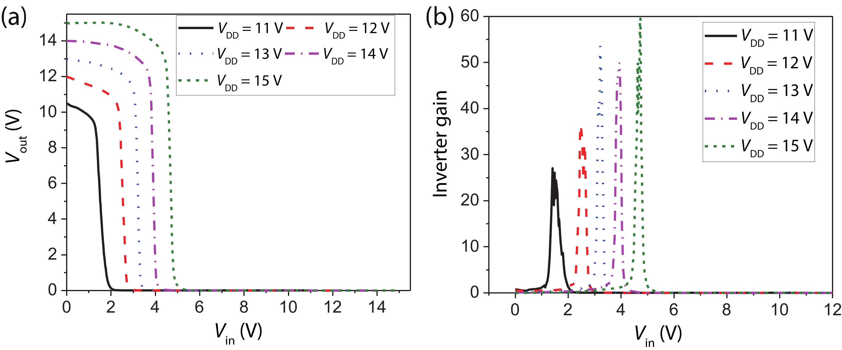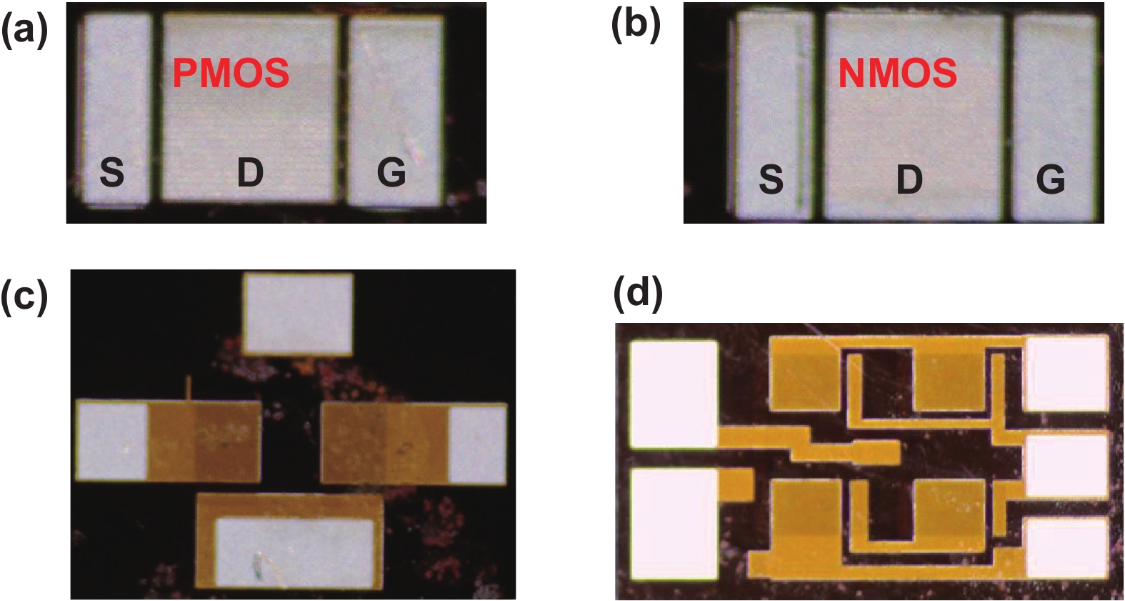 Abstract: In this article, the design, fabrication and characterization of silicon carbide (SiC) complementary-metal-oxide-semiconductor (CMOS)-based integrated circuits (ICs) are presented. A metal interconnect strategy is proposed to fabricate the fundamental N-channel MOS (NMOS) and P-channel MOS (PMOS) devices that are required for the CMOS circuit configuration. Based on the mainstream 6-inch SiC wafer processing technology, the simultaneous fabrication of SiC CMOS ICs and power MOSFET is realized. Fundamental gates, such as inverter and NAND gates, are fabricated and tested. The measurement results show that the inverter and NAND gates function well. The calculated low-to-high delay (low-to-high output transition) and high-to-low delay (high-to-low output transition) are 49.9 and 90 ns, respectively.