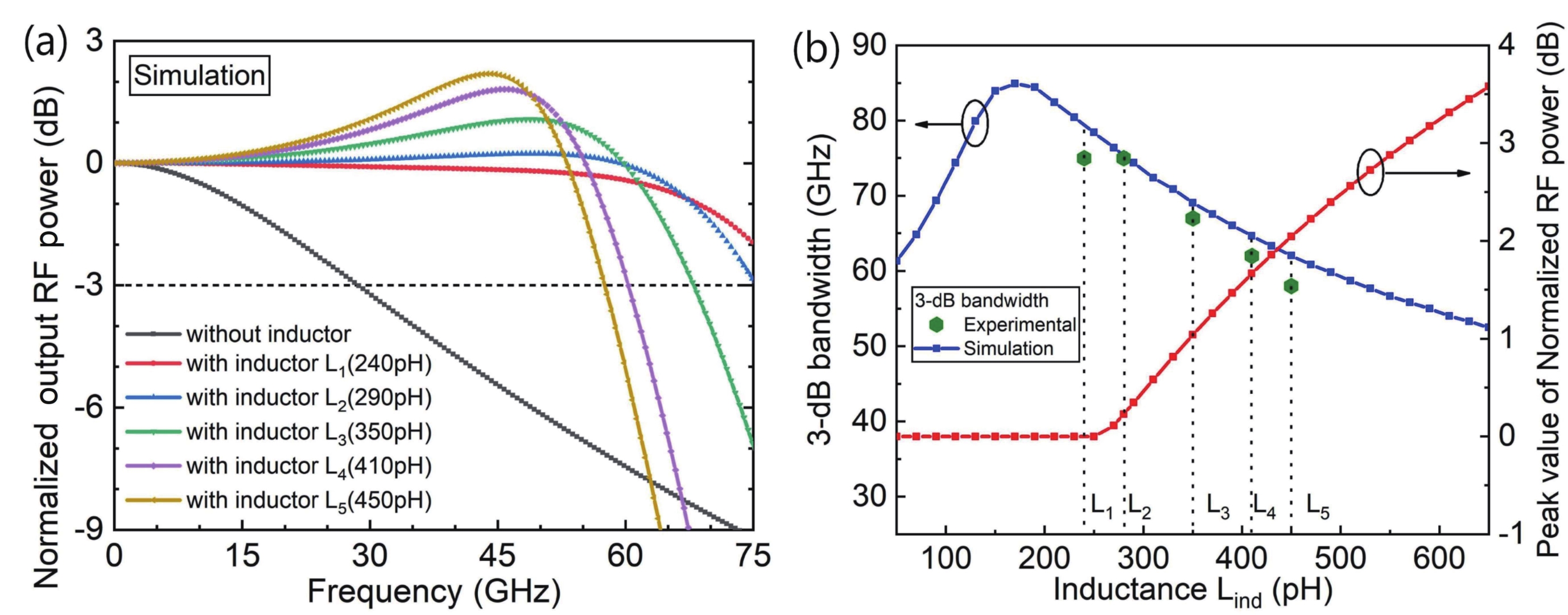 | Parameter | Rpd (Ω) | Cj (fF) | Rload (Ω) | Cp (fF) | Lind (pH) | Rind (Ω) | Cind (fF) | f3dB (GHz) |