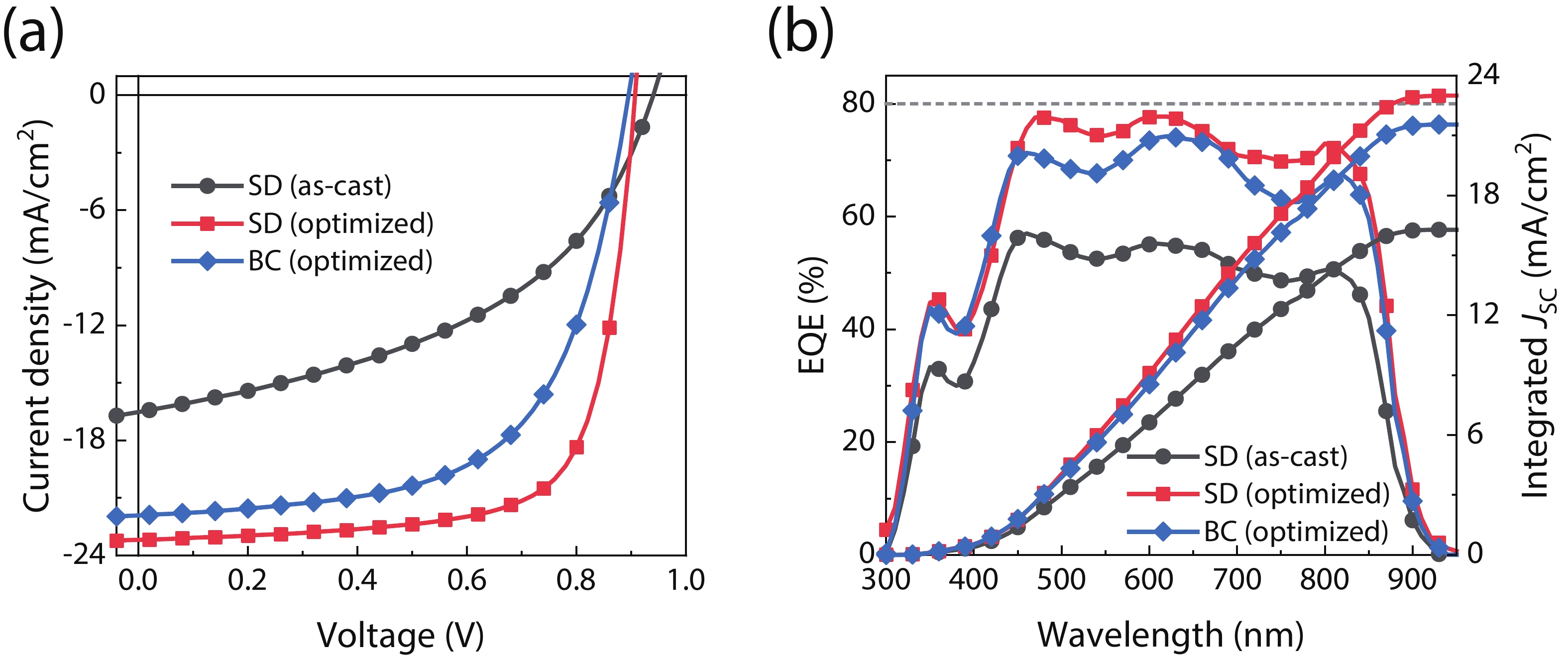 | a Average values were obtained from 10 separate devices; b Integrated JSC values from the EQE spectra. | |||||