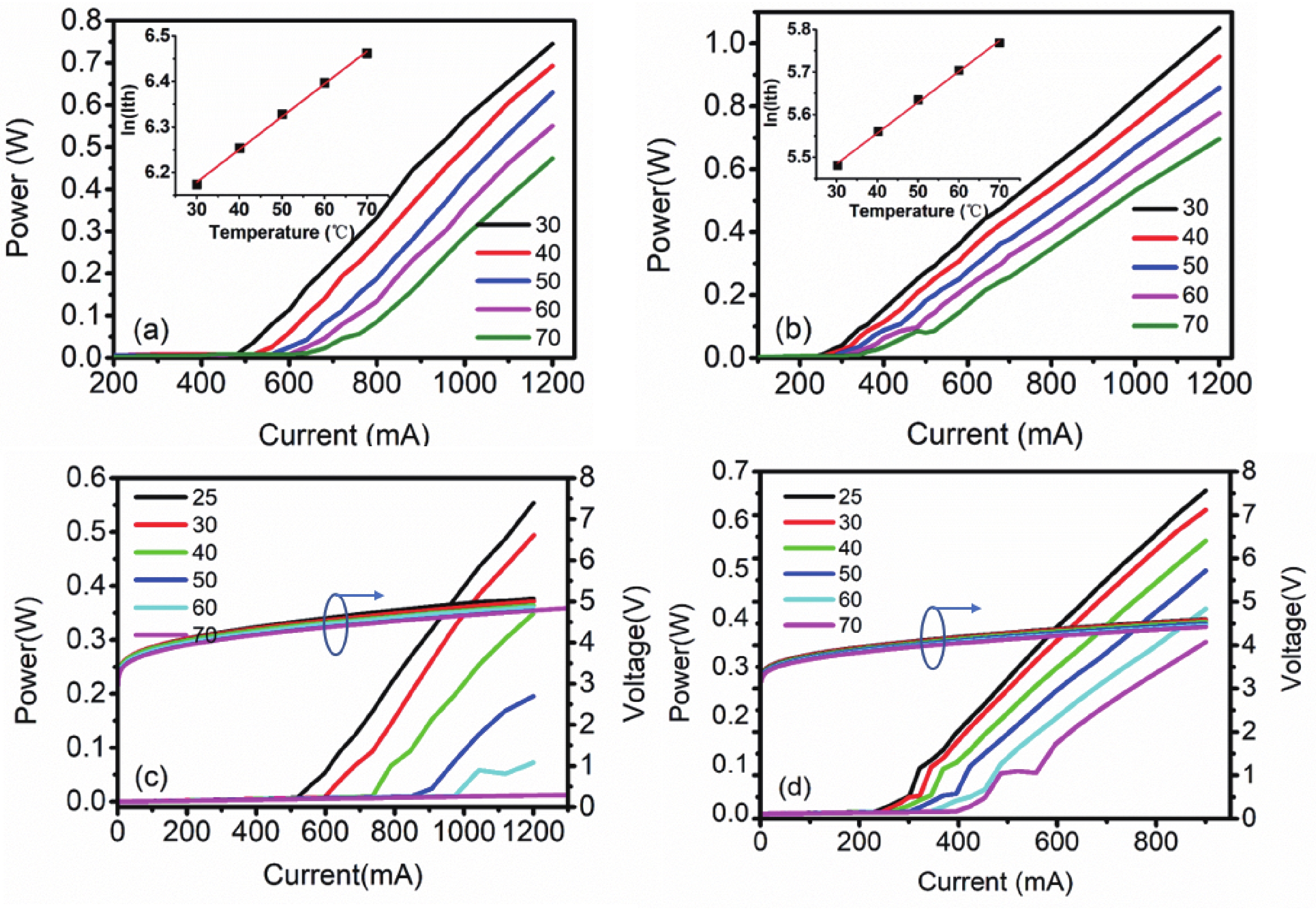 Abstract: In the past few years, many groups have focused on the research and development of GaN-based ultraviolet laser diodes (UV LDs). Great progresses have been achieved even though many challenges exist. In this article, we analyze the challenges of developing GaN-based ultraviolet laser diodes, and the approaches to improve the performance of ultraviolet laser diode are reviewed. With these techniques, room temperature (RT) pulsed oscillation of AlGaN UVA (ultraviolet A) LD has been realized, with a lasing wavelength of 357.9 nm. Combining with the suppression of thermal effect, the high output power of 3.8 W UV LD with a lasing wavelength of 386.5 nm was also fabricated.