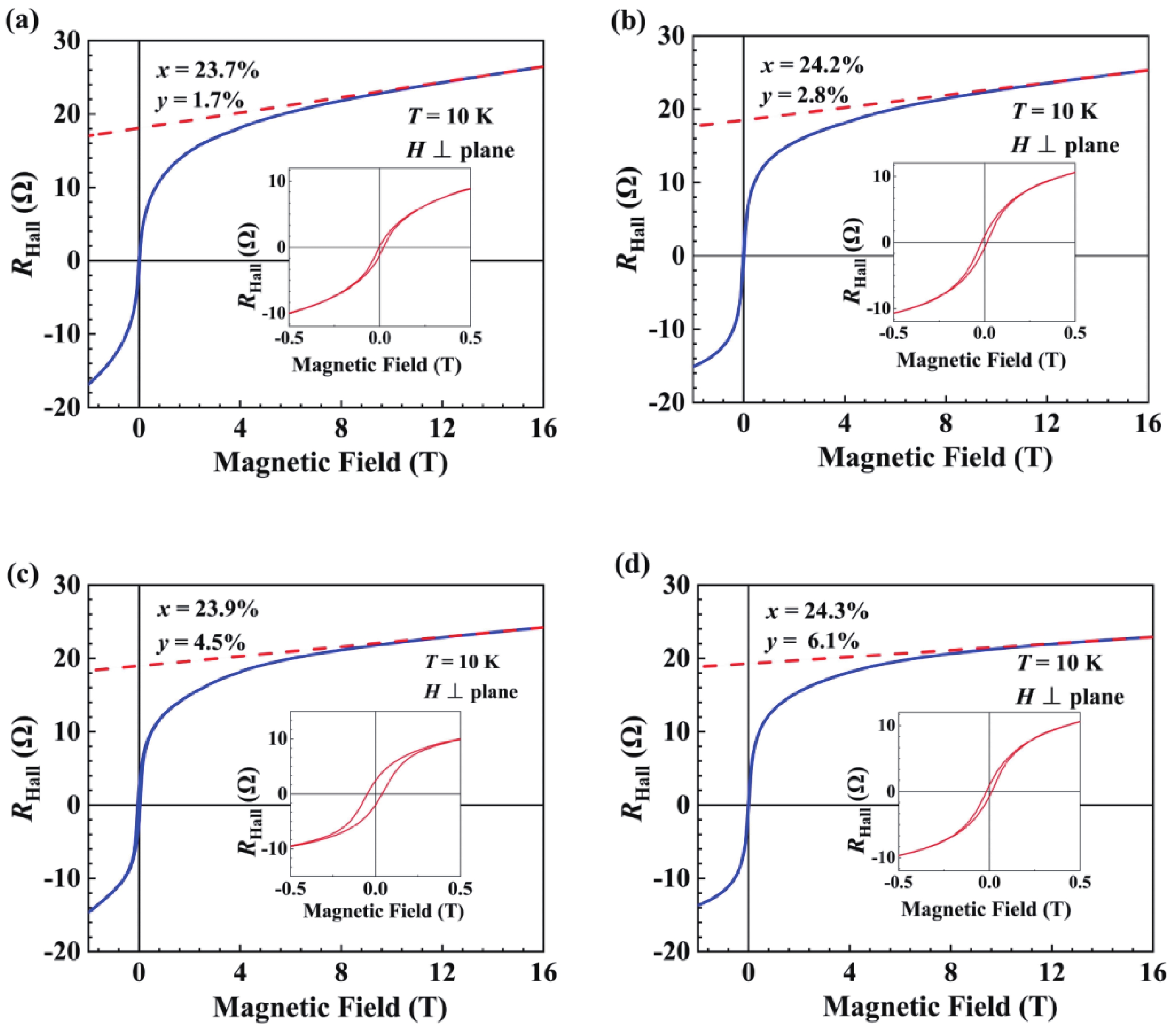 | Sample | x (%) | y (%) | TC (K) | μ (cm2/(V?s)) | MS (emu/cc) | Ku (erg/cc) |