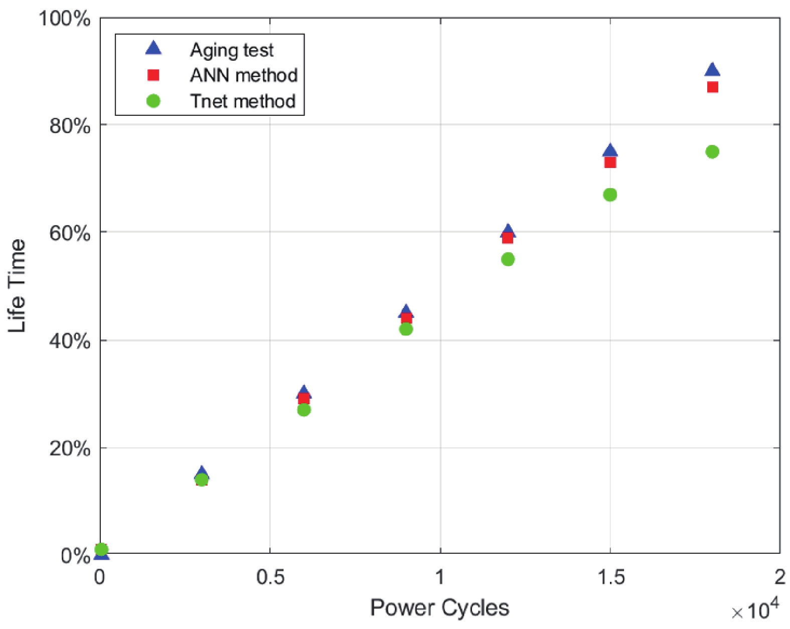 Table 2. Correspondence between the power cycles and the lifetime (ΔTj = 120 °C, Tm = 85 °C).