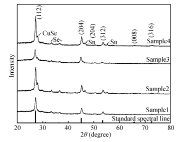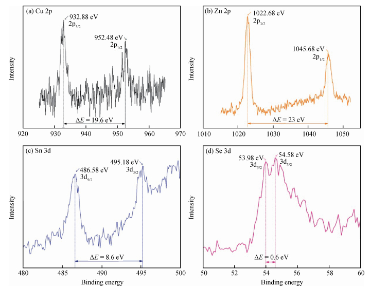 The CuZnSn(CZT) precursor thin films are grown by ion-beam sputtering Cu, Zn, Sn targets with different orders and then sputtering Se target to fabricate Cu2ZnSnSe4(CZTSe) absorber thin films on molybdenum substrates. They are annealed in the same vacuum chamber at 400℃. The characterization methods of CZTSe thin films include X-ray diffraction(XRD), energy dispersive spectroscopy(EDS), scanning electron microscopy(SEM), and X-ray photoelectron spectra(XPS) in order to study the crystallographic properties, composition, surface morphology, electrical properties and so on. The results display that the CZTSe thin films got the strongest diffraction peak intensity and were with good crystalline quality and its morphology appeared smooth and compact with a sequence of Cu/Zn/Sn/Se, which reveals that the expected states for CZTSe are Cu1+, Zn2+, Sn4+, Se2+. With the good crystalline quality and close to ideal stoichiometric ratio the resistivity of the CZTSe film with the sequence of Cu/Zn/Sn/Se is lower, whose optical band gap is about 1.50 eV.