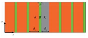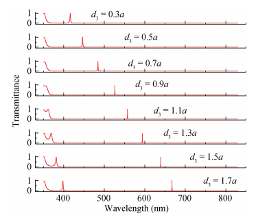 By inserting an air cavity into a one-dimensional photonic crystal of LiF/GaSb, a tunable filter covering the whole visible range is proposed. Following consideration of the dispersion of the materials, through modulating the thickness of the air cavity, we demonstrate that a single resonant peak can shift from 416.1 to 667.3 nm in the band gap at normal incidence by means of the transfer matrix method. The research also shows that the transmittance of the channel can be maximized when the number of periodic LiF/GaSb layers on one side of the air defect layer is equal to that of the other side. When adding a period to both sides respectively, the full width at half maximum of the defect mode is reduced by one order of magnitude. This structure will provide a promising approach to fabricate practical tunable filters in the visible region with ultra-wide tuning range.