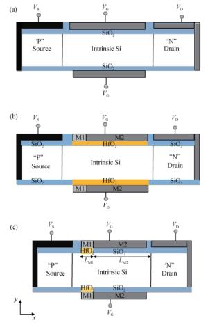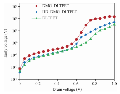 In this paper, charge-plasma-based tunnel FET is proposed by employing dual material gate with hetero gate dielectric technique and it is named hetero-dielectric dual material gate doping-less TFET(HD_DMG_DLTFET). It is compared with conventional doping-less TFET(DLTFET) and dual material gate doping-less TFET(DMG_DLTFET) on the basis of analog and RF performance. The HD_DMG_DLTFET provides better ON state current(ION=94 μA/μm), ION/IOFF(≈ 1:36×1013), point(≈ 3 mV/dec) and average subthreshold slope(AV-SS=40.40 mV/dec). The proposed device offers low total gate capacitance(Cgg)along with higher drive current. However, with a better transconductance(gm) and cut-off frequency(fT), the HD_DMG_DLTFET can be a good candidate for RF circuitry. The early voltage(VEA) and output conductance(gd) are also moderate for the proposed device with comparison to other devices and therefore can be a candidate for analog devices. From all these simulation results and their study, it is observed that HD_DMG_DLTFET has improved analog/RF performance compared to DLTFET and DMG_DLTFET.