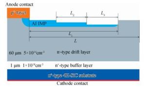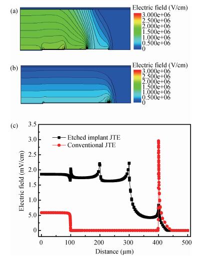 This paper presents the design and fabrication of an etched implant junction termination extension (JTE) for high-voltage 4H-SiC PiN diodes. Unlike the conventional JTE structure, the proposed structure utilizes multiple etching steps to achieve the optimum JTE concentration range. The simulation results show that the etched implant JTE method can improve the blocking voltage of SiC PiN diodes and also provides broad process latitude for parameter variations, such as implantation dose and activation annealing condition. The fabricated SiC PiN diodes with the etched implant JTE exhibit a highest blocking voltage of 4.5 kV and the forward on-state voltage of 4.6 V at room temperature. These results are of interest for understanding the etched implant method in the fabrication of high-voltage power devices.
