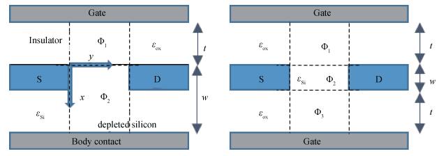 Subthreshold conduction is governed by the potential distribution. We focus on full two-dimensional (2D) analytical modeling in order to evaluate the 2D potential profile within the active area of FinFET structure. Surfaces and interfaces, which are key nanowire elements, are carefully studied. Different structures have different boundary conditions, and therefore different effects on the potential distributions. A range of models in FinFET are reviewed in this paper. Parabolic approximation and evanescent mode are two different basic math methods to simplify the Poisson's equation. Both superposition method and parabolic approximation are widely used in heavily doped devices. It is helpful to learn performances of MOSFETs with different structures. These two methods achieved improvement to face different structures from heavily doped devices or lightly doped devices to junctionless transistors.