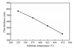 Thin films of CdS have been prepared by chemical spray pyrolysis by spraying precursor solution directly onto soda lime glass(SLG) substrates. Influence of substrate temperature on structural, optical, morphological and electrical properties have been investigated by using various techniques such as low angle X-ray diffraction(XRD), Raman spectroscopy, X-ray photoelectron spectroscopy(XPS), field emission scanning electron microscopy(FESEM), atomic force microscopy(AFM), transmission electron microscopy(TEM), UV-visible spectroscopy photoluminescence(PL) spectroscopy etc. Formation of CdS has been confirmed by low angle XRD, Raman spectroscopy and XPS analysis. XRD pattern showed that CdS films are polycrystalline, have hexagonal structure and prefer orientation of crystallites shifts from(101) to(002) with increase in substrate temperature. Raman spectroscopy revealed that exciton-phonon coupling depends on substrate temperature and hence on crystallite size. Optical band gap increased from 2.43 to 2.99 eV when substrate temperature increased from 325 to 475℃. Transmittance of the film also showed an increasing trend from ~52% to ~80% with increase in substrate temperature. Such high band gap and transmittance values of CdS films prepared at 475℃ make it a useful window material in CdS/CdTe and CdS/Cu2S heterojunction solar cells.