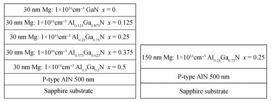 To theoretically research the influence of a varied Al component on the active layer of AlGaN photocathodes, the first principle based on density functional theory is used to calculate the formation energy and band structure of AlxGa1-xN with x at 0, 0.125, 0.25, 0.325, and 0.5. The calculation results show that the formation energy declines along with the Al component rise, while the band gap is increasing with Al component increasing. AlxGa1-x with x at 0, 0.125, 0.25, 0.325, and 0.5 are direct band gap semiconductors, and their absorption coefficient curves have the same variation tendency. For further study, we designed two kinds of reflection-mode AlGaN photocathode samples. Sample 1 has an AlxGa1-x active layer with varied Al component ranging from 0.5 to 0 and decreasing from the bulk to the surface, while sample 2 has an AlxGa1-x active layer with the fixed Al component of 0.25. Using the multi-information measurement system, we measured the spectral response of the activated samples at room temperature. Their photocathode parameters were obtained by fitting quantum efficiency curves. Results show that sample 1 has a better spectral response than sample 2 at the range of short-wavelength. This work provides a reference for the structure design of the AlGaN photocathode.