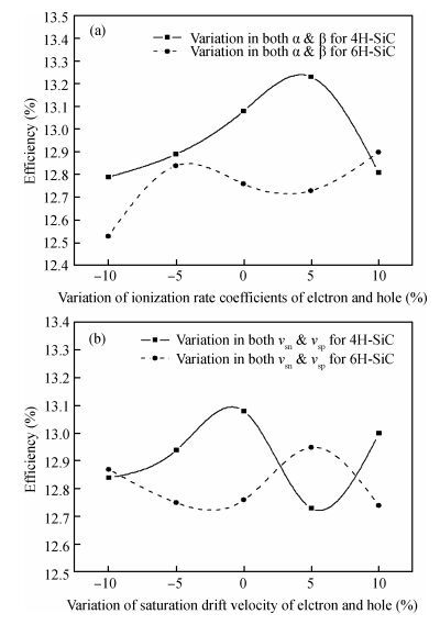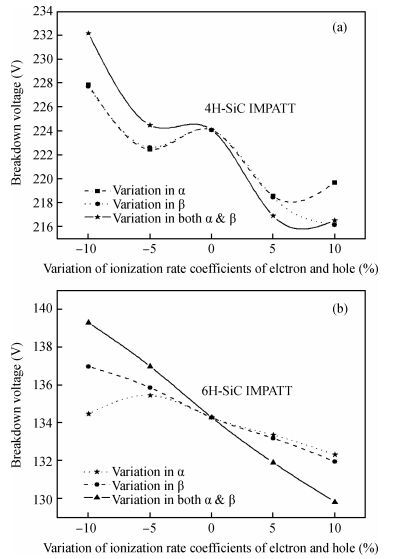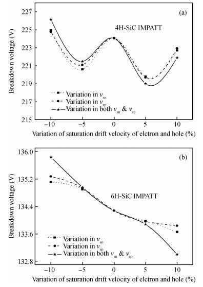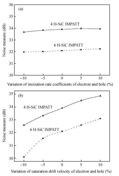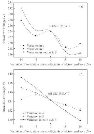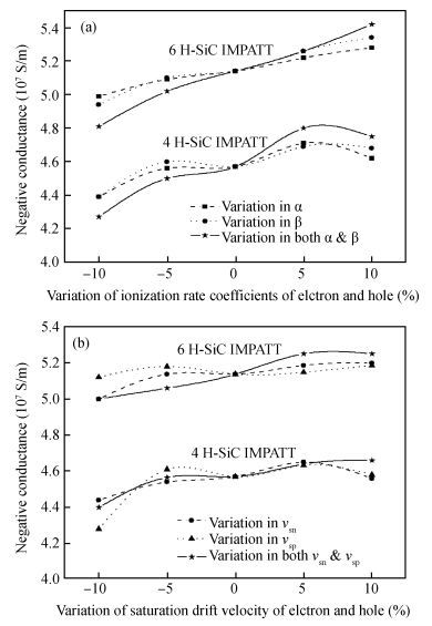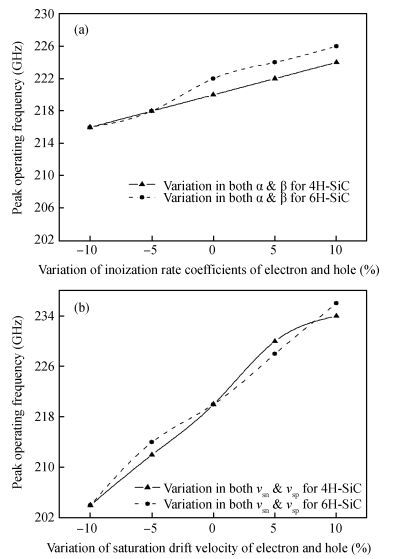 Ionization rate coefficients and saturation drift velocities for electrons and holes are the vital material parameters in determining the performance of an IMPATT diode. We have performed a sensitivity analysis of the millimeter wave characteristics of 4H-SiC and 6H-SiC IMPATT diodes with reference to the above mentioned material data and an operating frequency of 220 GHz. The effect of a small variation in the ionization rate and drift velocity on the device characteristics like break down voltage, efficiency, noise measure and power output has been presented here.