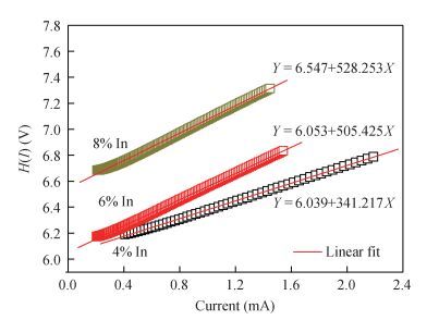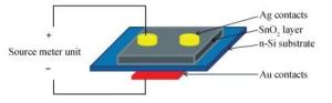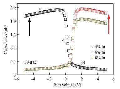 Control of the electronic parameters on a novel metal-oxide-semiconductor (MOS) diode by indium doping incorporation is emphasized and investigated. The electronic parameters, such as ideality factor, barrier height (BH), series resistance, and charge carrier density are extracted from the current-voltage (I-V) and the capacitance-voltage (C-V) characteristics. The properties of the MOS diode based on 4%, 6% and 8% indium doped tin oxide are largely studied. The Ag/SnO2/nSi/Au MOS diode is fabricated by spray pyrolysis route, at 300℃ from the In-doped SnO2 layer. This was grown onto n-type silicon and metallic (Au) contacts which were made by thermal evaporation under a vacuum@10-5 Torr and having a thickness of 120 nm and a diameter of 1 mm. Determined by the Cheung-Cheung approximation method, the series resistance increases (334-534 Ω)with the In doping level while the barrier height (BH) remains constant around 0.57 V. The Norde calculation technique gives a similar BH value of 0.69 V but the series resistance reaches higher values of 5500 Ω. The indium doping level influences on the characteristics of Ag/SnO2:In/Si/Au MOS diode while the 4% indium level causes the capacitance inversion and the device turns into p-type material.