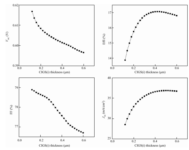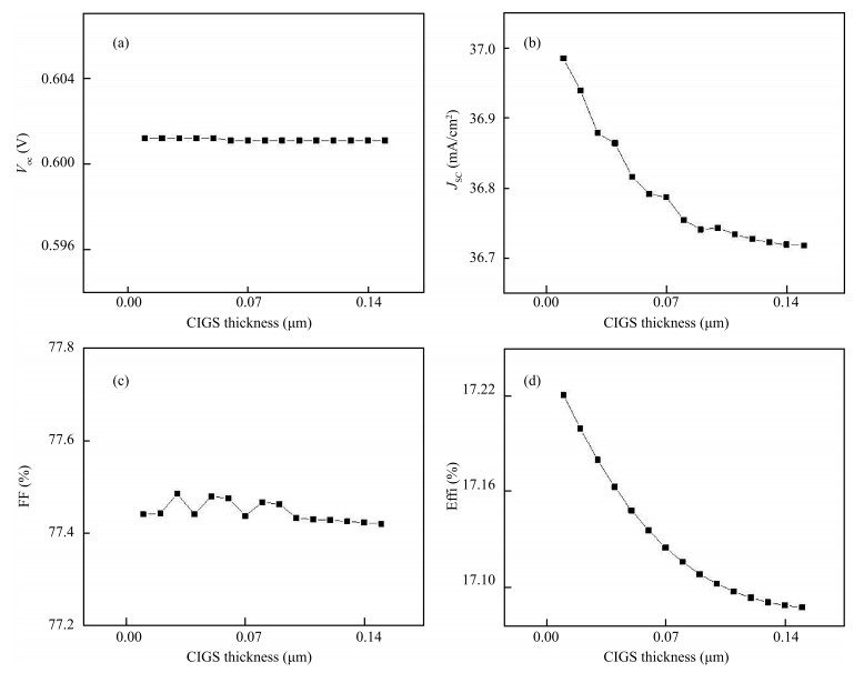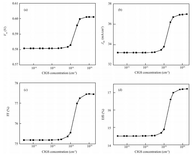 Theoretical simulation of performances in CIGS thin-film solar cells with cadmium-free buffer layer