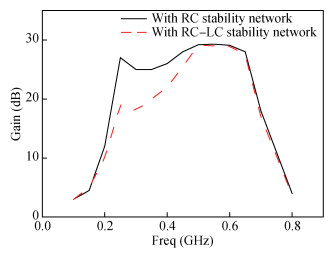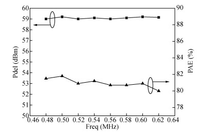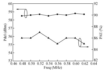 A 500-600 MHz high-efficiency, high-power GaN power amplifier is designed and realized on the basis of the push-pull structure. The RC-LC stability network is proposed and applied to the power amplifier circuit for the first time. The RC-LC stability network can significantly reduce the high gain out the band, which eliminates the instability of the power amplifier circuit. The developed power amplifier exhibits 58.5 dBm (700 W) output power with a 17 dB gain and 85% PAE at 500-600 MHz, 300 μs, 20% duty cycle. It has the highest PAE in P-band among the products at home and abroad.