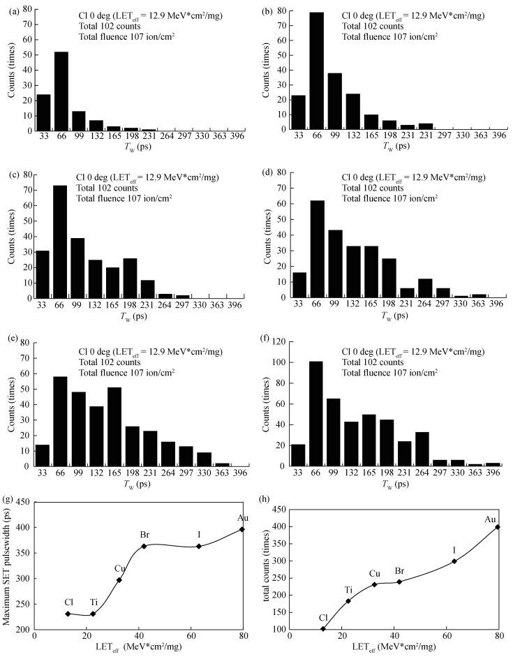 With the critical charge reduced to generate a single event effect (SEE) and high working frequency for a nanometer integrated circuit, the single event effect (SET) becomes increasingly serious for high performance SOC and DSP chips. To analyze the radiation-hardened method of SET for the nanometer integrated circuit, the n+ guard ring and p+ guard ring have been adopted in the layout for a 65 nm commercial radiation-hardened standard cell library. The weakest driving capacity inverter cell was used to evaluate the single event transient (SET) pulse-width distribution. We employed a dual-lane measurement circuit to get more accurate SET's pulse-width. Six kinds of ions, which provide LETs of 12.5, 22.5, 32.5, 42, 63, and 79.5 MeV·cm2/mg, respectively, have been utilized to irradiate the SET test circuit in the Beijing Tandem Accelerator Nuclear Physics National Laboratory. The testing results reveal that the pulse-width of most SETs is shorter than 400 ps in the range of LETeff from 12.5 MeV·cm2/mg to 79.5 MeV·cm2/mg and the pulse-width presents saturation tendency when the effective linear energy transfer (LETeff) value is larger than 40 MeV·cm2/mg. The test results also show that the hardened commercial standard cell's pulse-width concentrates on 33 to 264 ps, which decreases by 40% compared to the pulse-width of the 65 nm commercial unhardened standard cell.