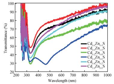Cd1-xZnxS nanoparticles were grown on pre-cleaned glass substrates using microwave-assisted chemical bath deposition technique. Nanoparticles obtained by this method were smooth, uniform, good adherent, brownish yellow in color where the brightness of the yellow color nature decreases with increasing Zn2+ content. The elemental composition analysis confirmed that the nanoparticles comprise of Cd2+, Zn2+and S2-. Scanning electron microscope images confirmed the surface uniformity of the Cd1-xZnxS nanoparticles devoid of any void, pinhole or cracks and covered the substrate well. The particle size also decreases with increasing Zn ion content. X-ray diffraction (XRD) indicates the hexagonal structure (002) without phase transition. The grain size decreases from 36.45 to 9.60 nm, dislocation density increases from 0.000745 to 0.01085 Line2/m2 and lattice parameter decreased from 6.868 to 6.155 nm with increasing Zn2+ content. The best transmittance of about 95% was achieved for x=1.0. The nanoparticles showed reduction in the absorbance as Zn ion content increased. Four point probe revealed that the electrical resistivity increased from 1.51×1010 to 6.67×1010 Ω ·cm while electrical conductivity decreases from 6.62×10-11 to 1.49×10-11 (Ω ·cm)-1 with increasing Zn2+ content. The other electrical properties such as sheet resistance increased from 1.52×108 to 1.58×108Ω, charge carrier mobility decreased from 0.777 to 0.0105 cm2/(V·s) and charge carrier density increased from 1.06×1012 to 3.95×1012 cm-3.