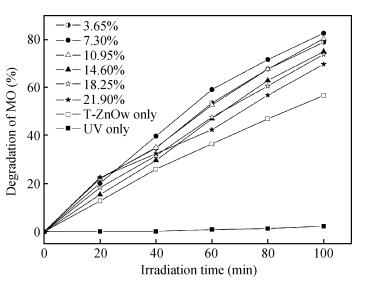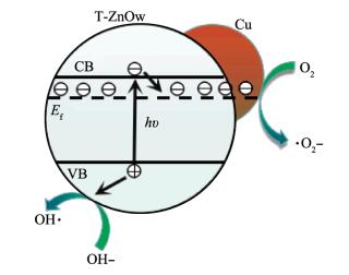 Cu/tetrapod-like ZnO whisker (T-ZnOw) compounds were successfully synthesized using N2H4·H2O as a reducing agent by a simple reduction method without any insert gas at room temperature. The crystal phase composition and morphology of the as-prepared samples were investigated by XRD, SEM and FESEM tests. The photocatalytic property of the as-prepared samples was detected by the degradation of methyl orange (MO) aqueous solution under UV irradiation. It can be found that Cu nanoparticles (CuNPs) dispersed on the surface of T-ZnOw increased with the increasing of Cu/Zn molar ratios (Cu/Zn MRs), and an octahedral structure of CuNPs was obtained when the sample was prepared with less than and equal to 7.30% Cu/Zn MR, but tended to a spherical or nanorod structure of CuNPs densely arranged on the surface of T-ZnOw, which is prepared by Cu/Zn MRs up to 22.00%. All the compounds exhibited excellent photocatalytic activity in decomposing of MO than T-ZnOw, the photocatalytic property of the samples increased with the increasing of Cu/Zn MRs up to 7.30%, while it decreases when further increasing the Cu/Zn MRs. The Schottky barrier of the Cu/T-ZnOw compound can effectively capture photoinduced electrons from the interface and enhanced the photocatalytic property of T-ZnOw.
