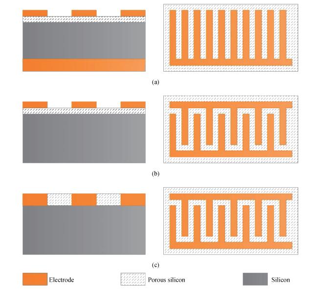 Applications based on sensitive property of porous silicon (PSi) were researched. As a kind of porous material, the feasibility of PSi as a getter material was studied. Five groups of samples with different parameters were prepared. The gas-sensing property of PSi was studied by the test system and suitable parameters of PSi were also discussed. Meanwhile a novel structure of humidity sensor, using porous silicon as humidity-sensitive material, based on MEMS process has been successfully designed. The humidity-sensing properties were studied by a test system. Because of the polysilicon layer deposited upon the PSi layer, the humidity sensor can realize a quick dehumidification by itself. To extend service life and reduce the effect of the environment, a passivation layer (Si3N4) was also deposited on the surface of electrodes. The result indicated the novel humidity sensor presented high sensitivity (1.1 pF/RH%), low hysteresis, low temperature coefficient (0.5%RH/℃) and high stability.