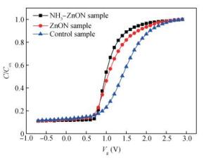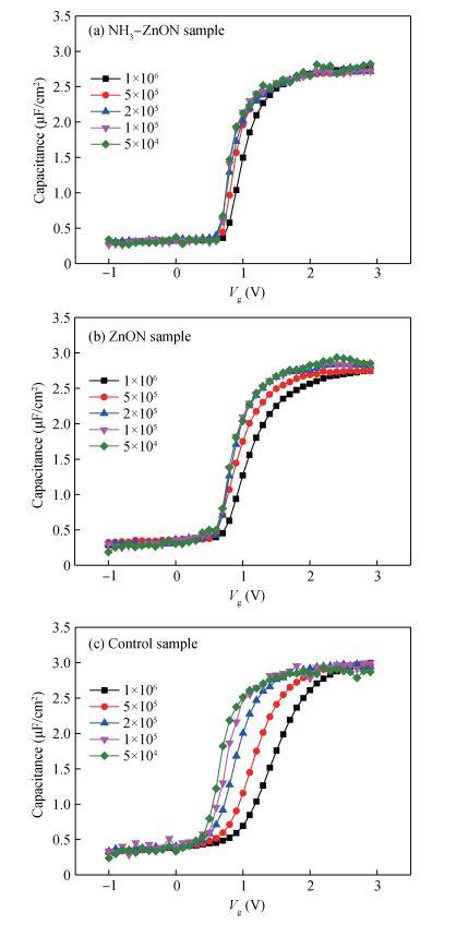 The GaAs MOS capacitor was fabricated with HfTiON as high-k gate dielectric and NH3-plasma-treated ZnON as interfacial passivation layer (IPL), and its interfacial and electrical properties are investigated compared to its counterparts with ZnON IPL but no NH3-plasma treatment and without ZnON IPL and no plasma treatment. Experimental results show that low interface-state density near midgap (1.17×1012 cm-2eV-1) and small gate leakage current density have been achieved for the GaAs MOS device with the stacked gate dielectric of HfTiON/ZnON plus NH3-plasma treatment. These improvements could be ascribed to the fact that the ZnON IPL can effectively block in-diffusion of oxygen atoms and out-diffusion of Ga and As atoms, and the NH3-plasma treatment can provide not only N atoms but also H atoms and NH radicals, which is greatly beneficial to removal of defective Ga/As oxides and As-As band, giving a high-quality ZnON/GaAs interface.