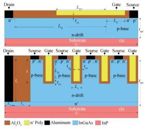 In this work, a new RF power trench-gate multi-channel laterally-diffused MOSFET (TGMC-LDMOS) on InGaAs is proposed. The gate-electrodes of the new structure are placed vertically in the trenches built in the drift layer. Each gate results in the formation of two channels in the p-body region of the device. The drain metal is also placed in a trench to take contact from the n+-InGaAs region located over the substrate. In a cell length of 5 μm, the TGMC-LDMOS structure has seven channels, which conduct simultaneously to carry drain current in parallel. The formation of multi-channels in the proposed device increases the drive current (ID) leading to a large reduction in the specific on-resistance (Ron-sp). Due to better control of gates on the drain current, the new structure exhibits substantially higher transconductance (gm) resulting in significant improvement in cut-off frequency (fT) and oscillation frequency (fmax). Using two-dimensional numerical simulations, a 55 V TGMC-LDMOS is demonstrated to achieve 7 times higher ID, 6.2 times lower Ron-sp, 6.3 times higher peak gm, 2.6 times higher fT, and 2.5 times increase in fmax in comparison to a conventional device for the identical cell length.