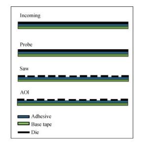 A big yield drop has been observed during the automatic inspection (AOI) after the saw stage. A step by step AOI inspection check and defect review is made to see which step made a big yield drop and which kind of defect contributed most to the yield drop. Scanning electron microscope (SEM) and energy dispersive spectrometer (EDS) analysis showed the shape and chemical element of the particle. From the EDS result, particles can be separated into two categories. One was the inorganic related materials, mainly including silicon (Si) element, which came from the saw stage. A design of experiment (DOE) is used to find some reasonable saw relative parameter and optimize it in order to remove the particle from the saw stage. But the quantity of this kind of particle was small. Yield was only improved by less than 5%. Our main effort was to remove another kind of particle which was organic related materials, mainly including carbon (C) and oxygen (O) element. This kind of particle was from tape residue. In order to remove the tape residual, one step was added before the saw stage. Almost all of the tape residual was removed. Finally, the final yield was improved by more than 15%.